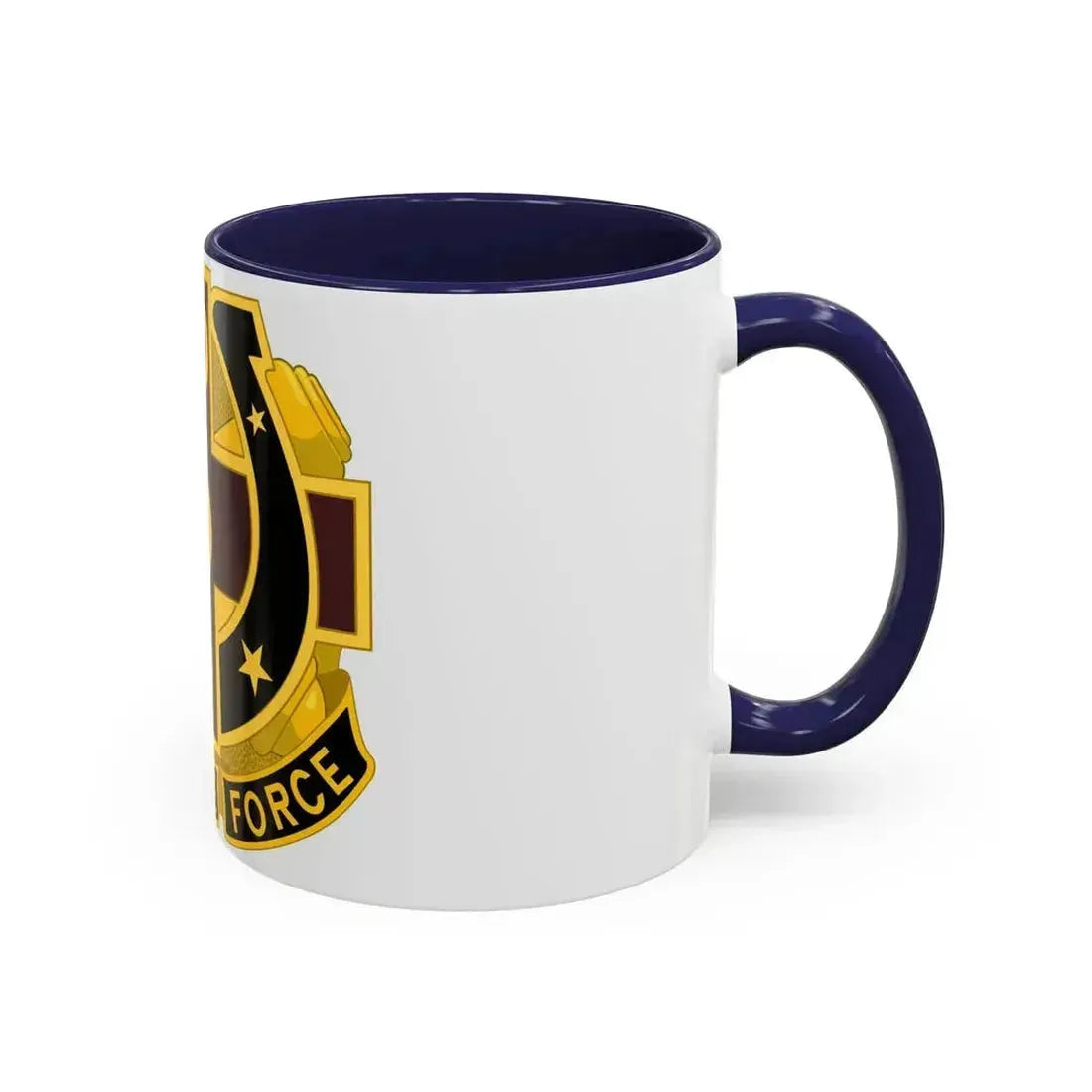 The Dental Health Activity Fort Sill 2 (U.S. Army) Accent Coffee Mug is a commemorative drinkware piece that honors the dental health training facility at Fort Sill, Oklahoma. The mug features a distinct design that showcases the U.S. Army's emblem, along with symbols and insignia associated with dental health activities within the military. The artwork on this mug serves as a tribute to the dedication and service of the medical personnel who serve in the U.S. Army Dental Corps.