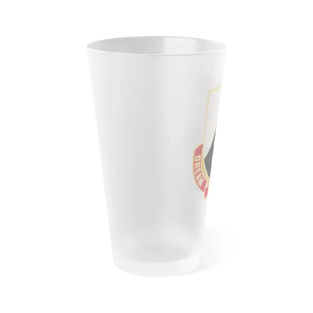 Frosted pint glass (16 oz / ≈0.47 L) with a soft matte finish and semi-translucent, one-sided print. Tough enough for bar and restaurant use, dishwasher safe, and BPA-free — a modern take on classic pintware.