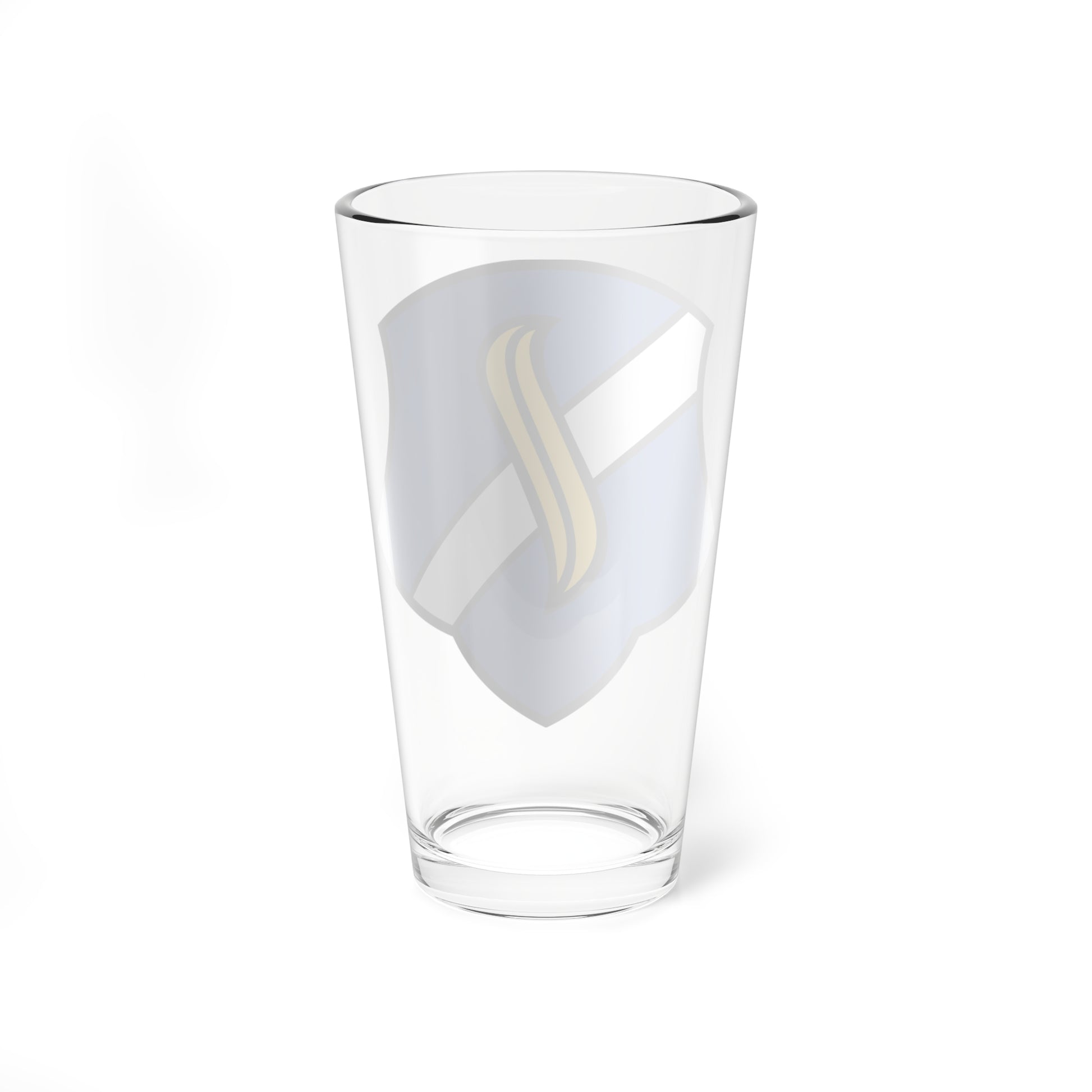 This pint glass showcases the coat of arms of Aidenbach, Germany, a design rich in local symbolism.