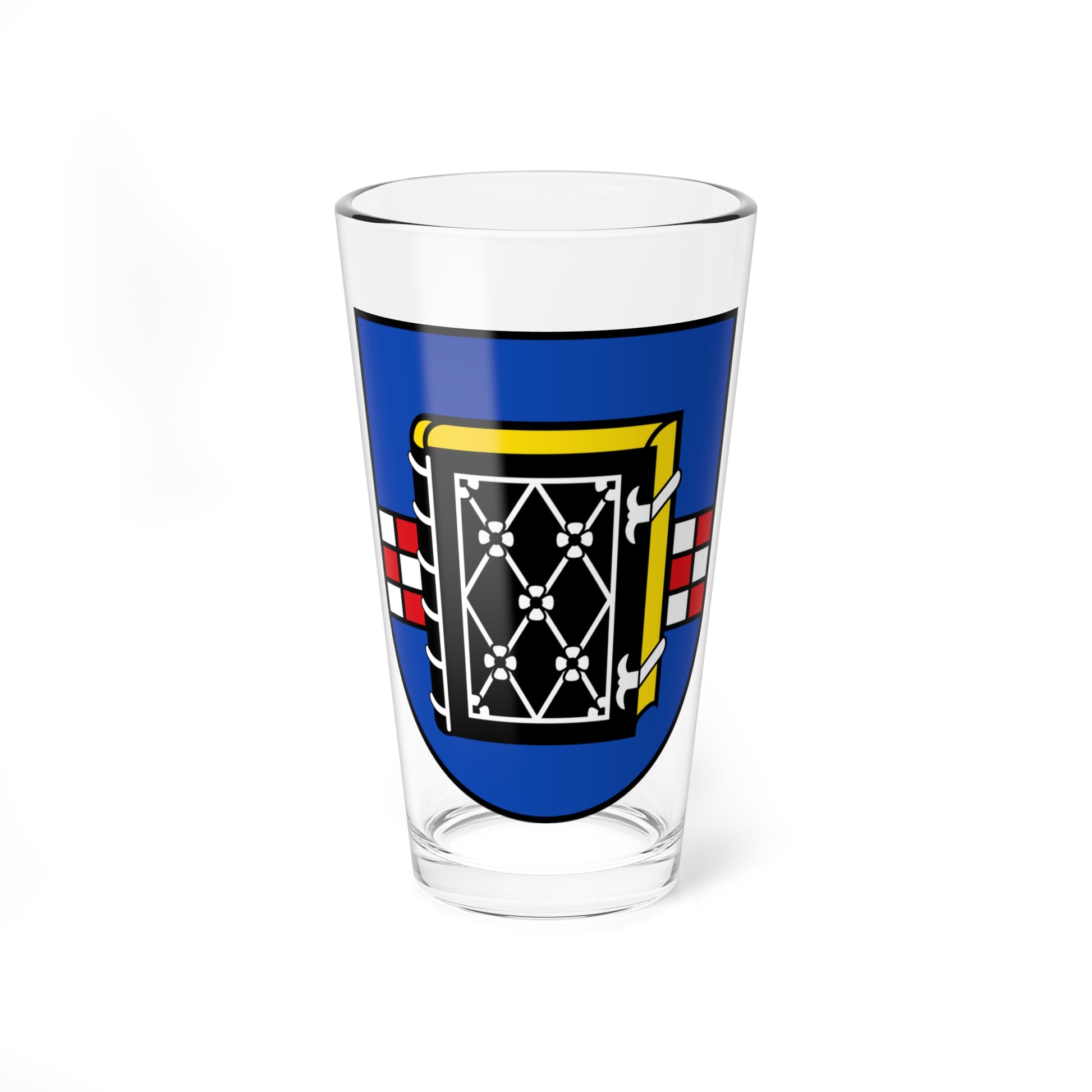 This pint glass showcases the official coat of arms (Wappen) of Bochum, Germany. The design is a faithful rendition of the city's heraldic emblem, rendered with precise detail.
