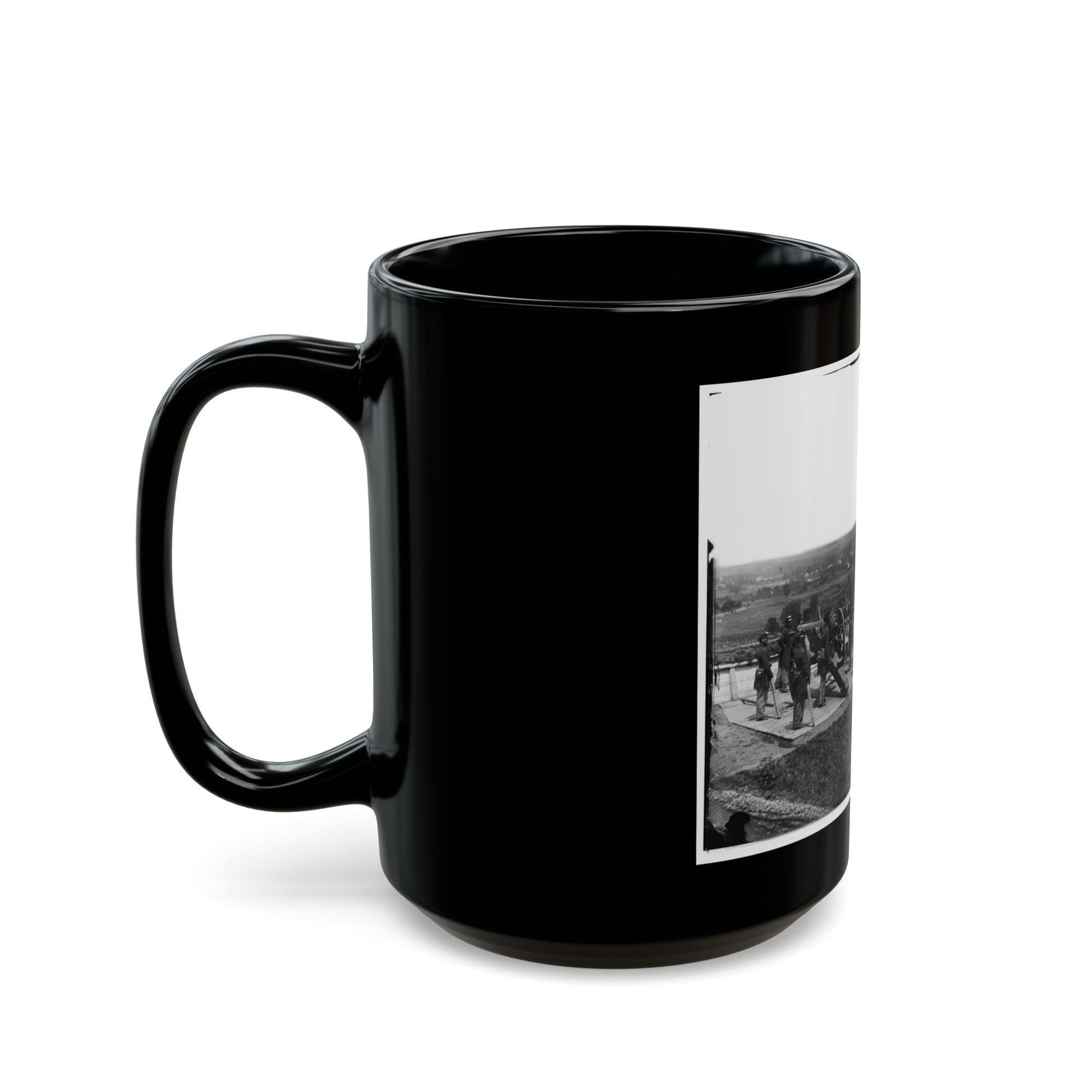 The District of Columbia, commonly known as Washington D.C., served as a significant battleground during the U.S. Civil War. One of the military units stationed there was Company H, 3d Massachusetts Heavy Artillery. This mug, titled "District Of Columbia. Gun Crews Of Company H, 3d Massachusetts Heavy Artillery, At Fort Lincoln (U.S. Civil War) Black Coffee Mug," pays homage to this historical event. The design features a black and white illustration of gun crews in action at Fort Lincoln during the war, offering an insightful glimpse into the military strategies employed during that period.