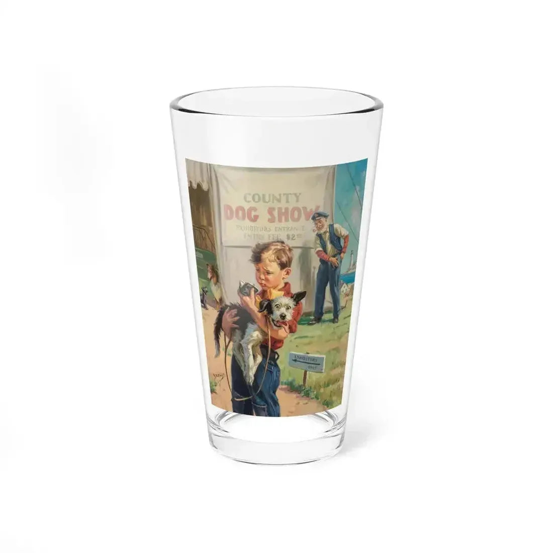 The Dog Show Pint Glass is a unique drinking vessel that celebrates man's best friend in an engaging and humorous way. With a design centered around the theme of dog shows, this 16oz glass features vibrant artwork showcasing various breeds strutting their stuff on the competition circuit. Whether it's the elegant grace of a Collie or the quirky charm of a Dachshund, each breed is depicted with a delightful sense of humor and character. This pint glass is perfect for anyone who appreciates unique and cool drinkware, as well as dog lovers who enjoy a touch of whimsy in their everyday lives.