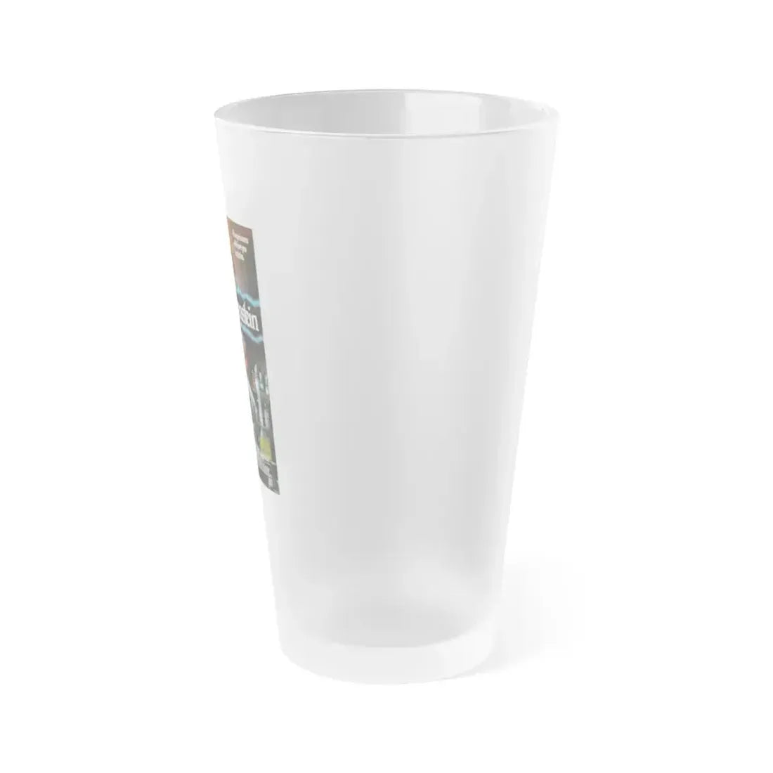 Frosted pint glass (16 oz / ≈0.47 L) with a soft matte finish and semi-translucent, one-sided print. Tough enough for bar and restaurant use, dishwasher safe, and BPA-free — a modern take on classic pintware.