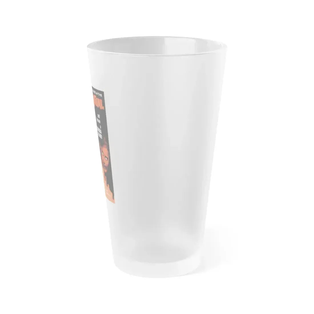 Frosted pint glass (16 oz / ≈0.47 L) with a soft matte finish and semi-translucent, one-sided print. Tough enough for bar and restaurant use, dishwasher safe, and BPA-free — a modern take on classic pintware.