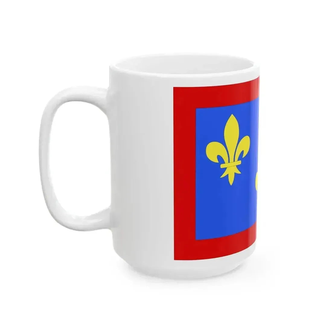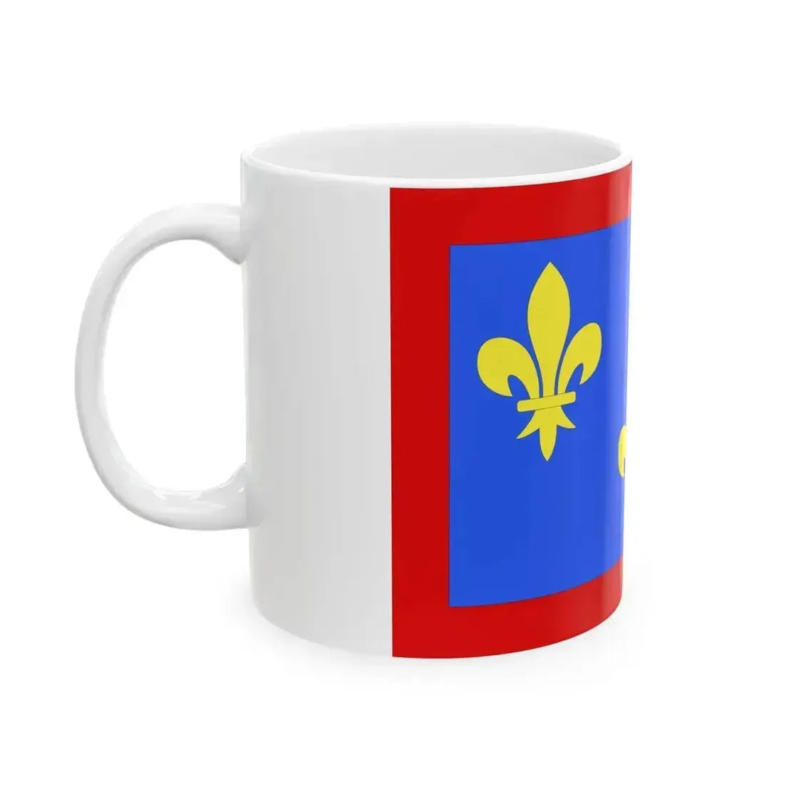 The design on the coffee mug highlights the symbolism of the department's flag. The blue field represents the Atlantic Ocean, while the white represents the soil of the region. The golden fleur-de-lis in the center is a nod to the historical significance of this emblem within French culture. This mug makes for a charming addition to any kitchen or office space and can serve as a subtle reminder of France's rich heritage, particularly the department of Maine-et-Loire.