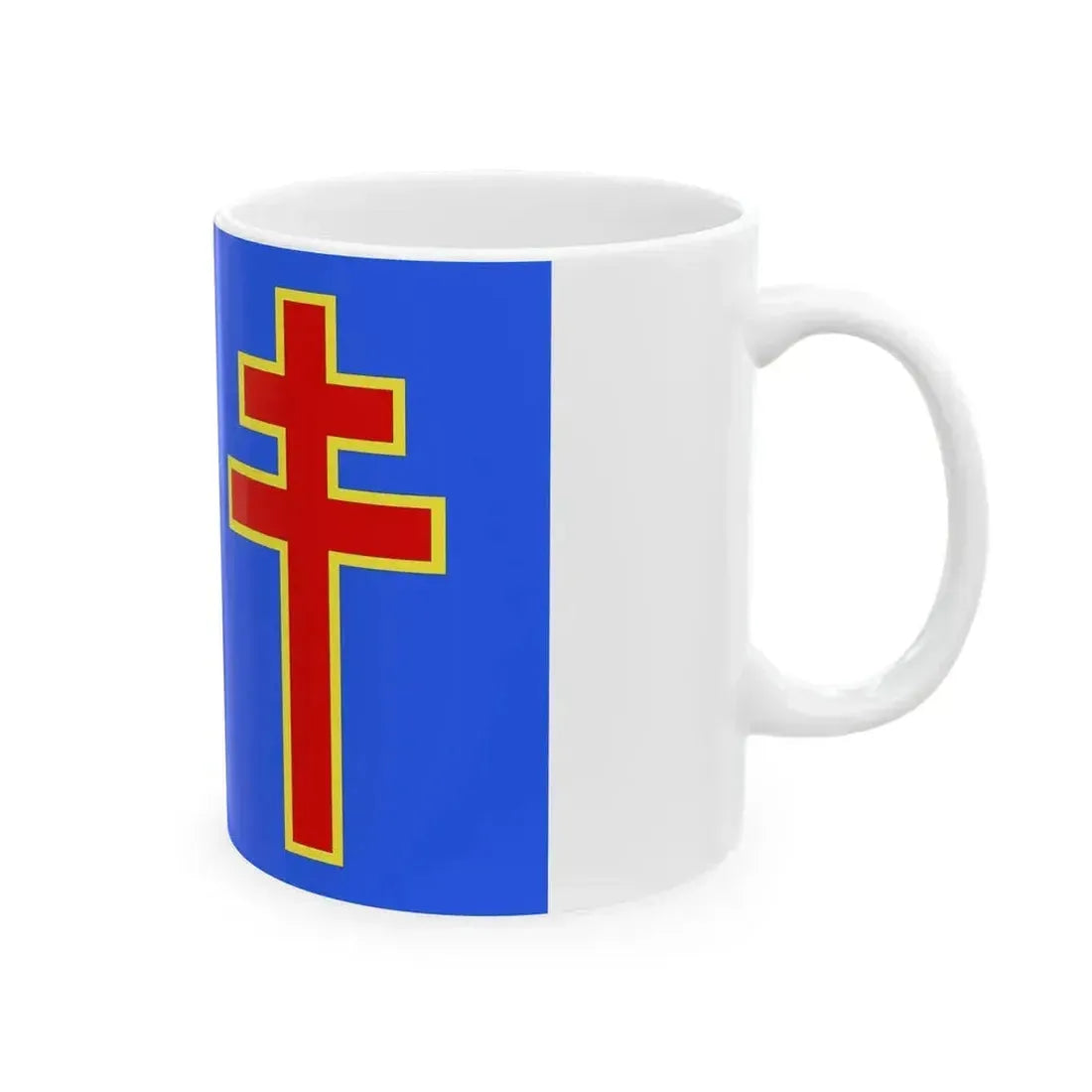 This coffee mug showcases an elegant design inspired by the flag of Maine-et-Loire, a department located in western France. The graphic, prominently displayed on the mug, features the department's emblematic drapeau. The design is a testament to the rich history and cultural heritage of this region. Perfect for anyone who appreciates unique and cool drinkware, this mug serves as a great conversation starter or a thoughtful gift for those with connections to France, particularly Maine-et-Loire.