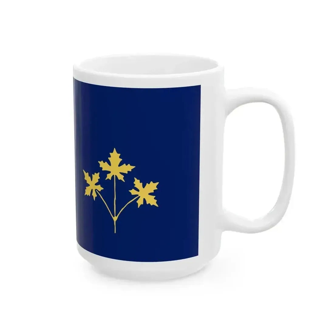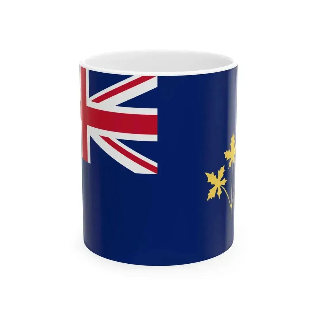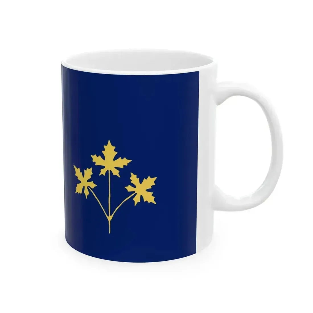 This E.M. Chadwick designed coffee mug showcases an intriguing interpretation of the Blue Ensign of Canada, as originally proposed in 1896. The unique artwork features yellow maple leaves against a white background on a blue field, a striking representation that evokes a sense of Canadian pride. The design is reminiscent of historical artifacts, making it an excellent choice for history enthusiasts or anyone with an appreciation for unique and cool drinkware.