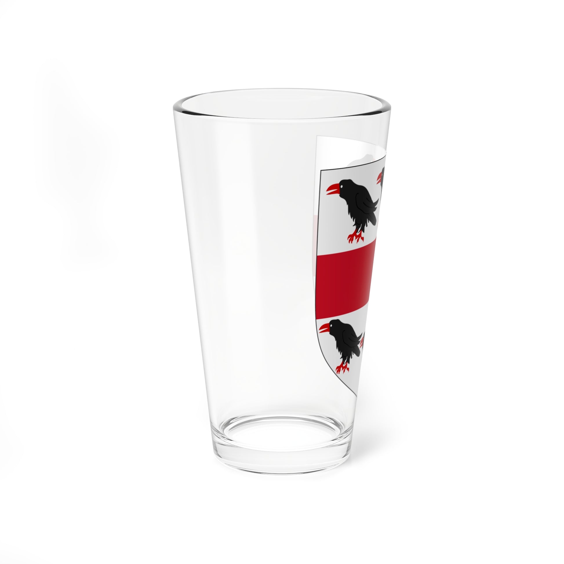 This pint glass showcases the distinguished Coat of Arms associated with the Earl of Onslow in England. The design, meticulously rendered, captures the essence of this historical heraldry.