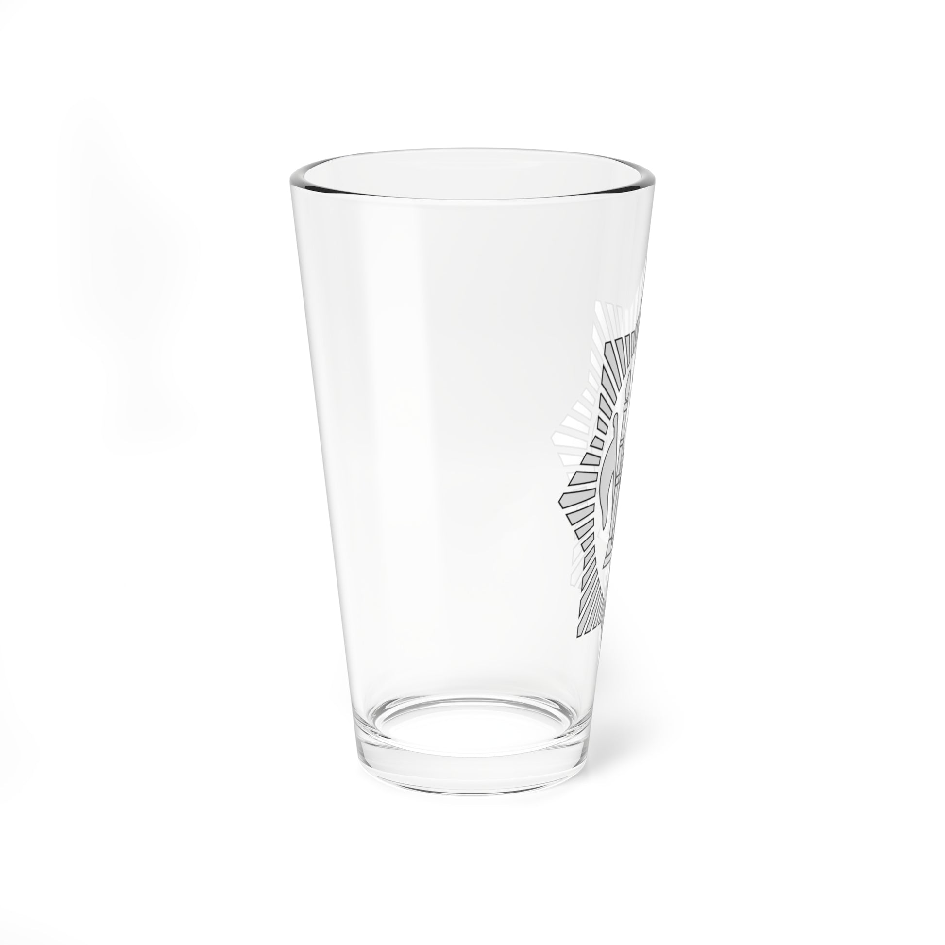 This pint glass showcases the historical Emblem of Afghanistan from the pivotal years of 1919 to 1928, a period marking the nation's emergence as an independent entity. The design centers around the distinctive "oval" variant of the national coat of arms, a symbol rich in visual and symbolic meaning.