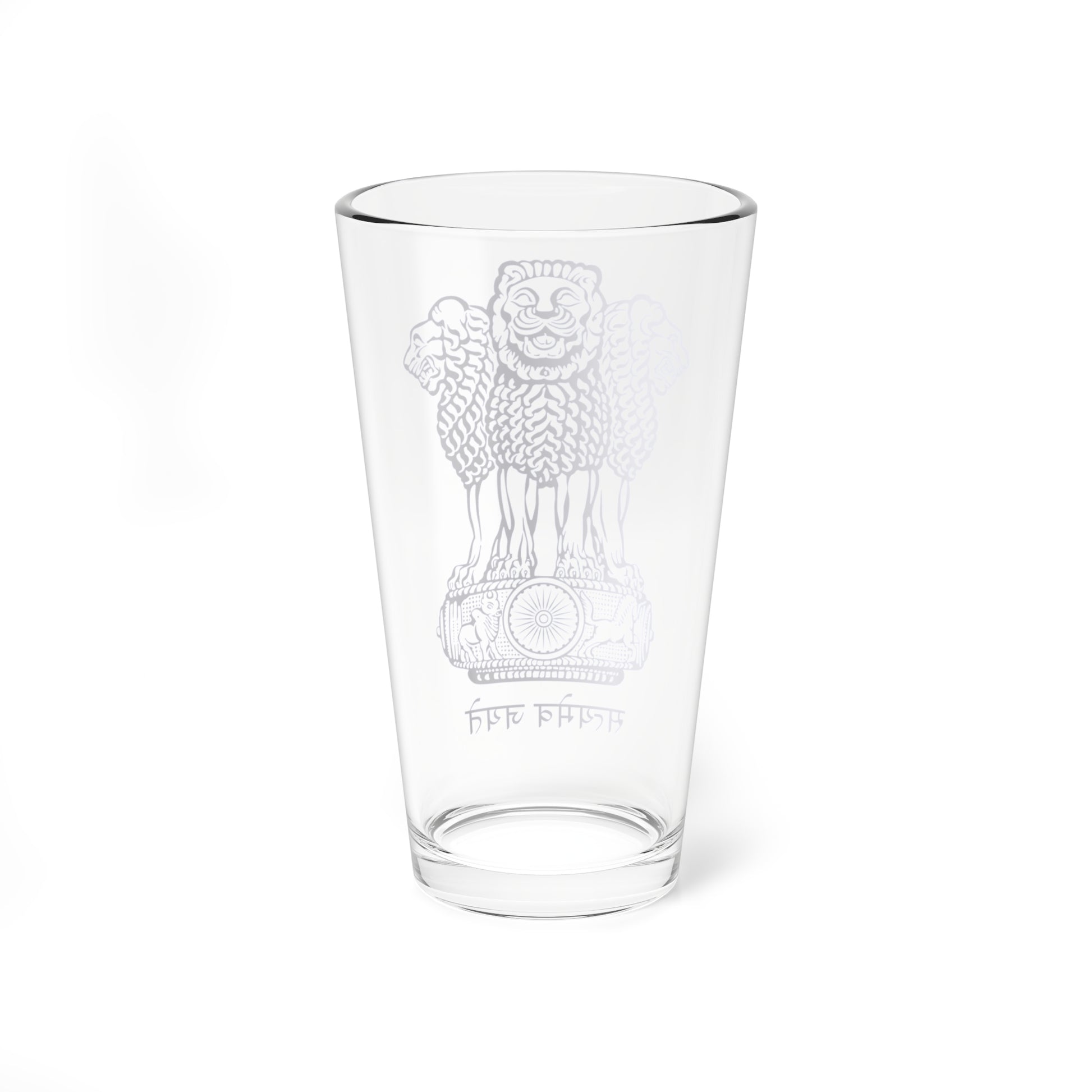 The Emblem of India, as depicted on this pint glass, is a potent symbol of national pride and unity. It represents the historical and cultural heritage of India, drawing upon the legacy of the Mauryan Empire and the principles of truth, justice, and non-violence.