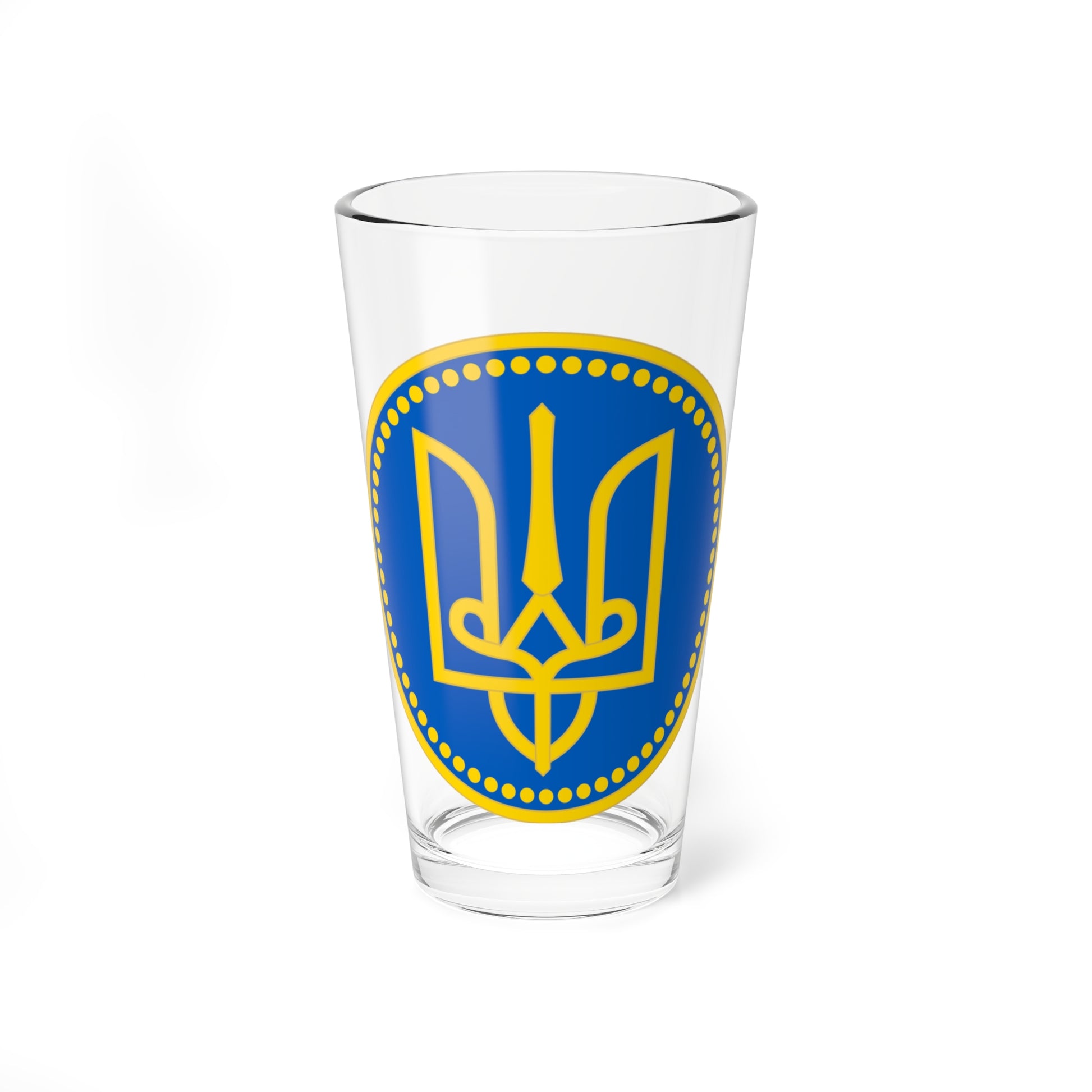 This pint glass showcases the iconic emblem of Kievan Rus and modern Ukraine: the Tryzub, a majestic trident rendered in striking detail.