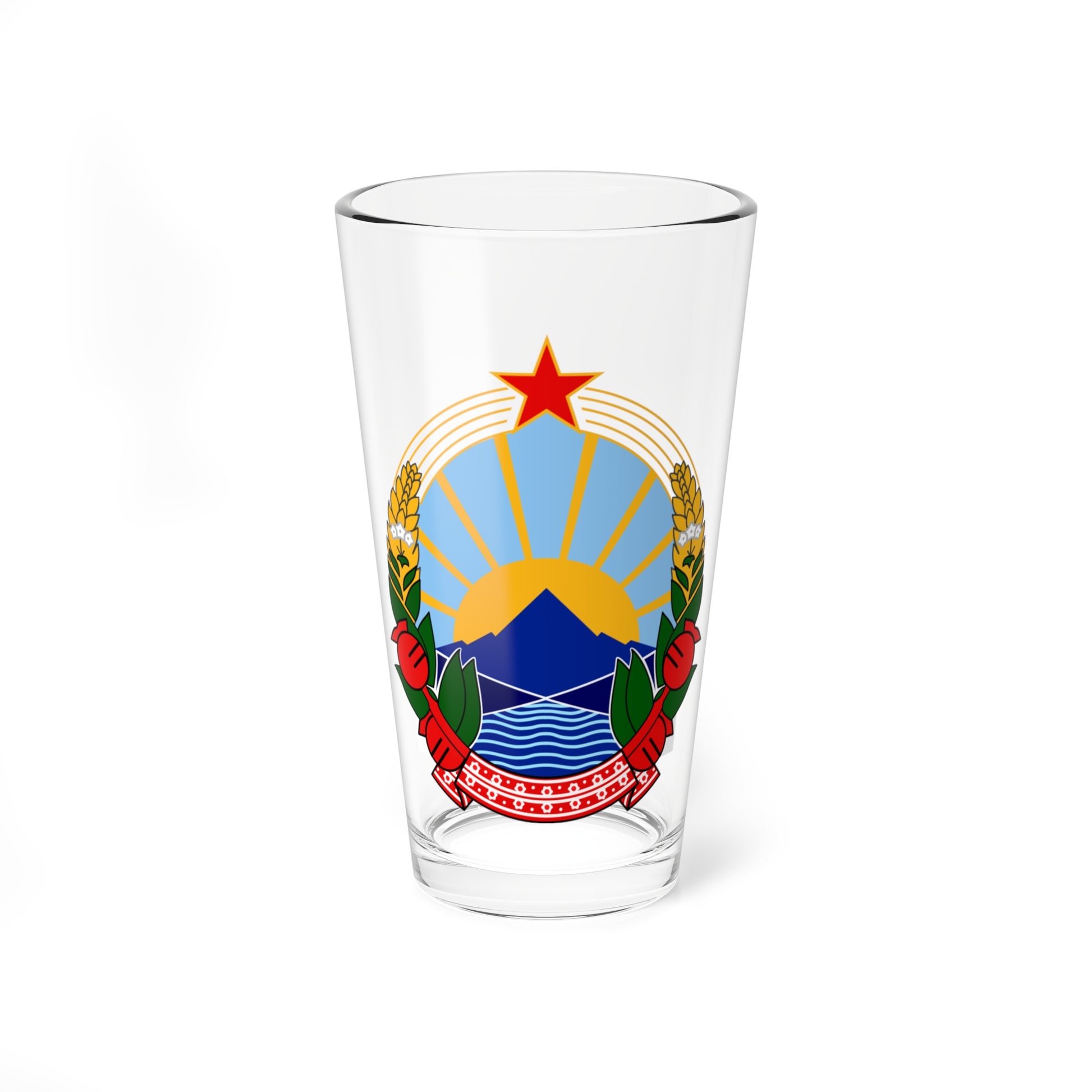Emblem of Macedonia 1946-2009 (Yugoslavia) (Coat of Arms) Pint Glass 16oz - Design Overview