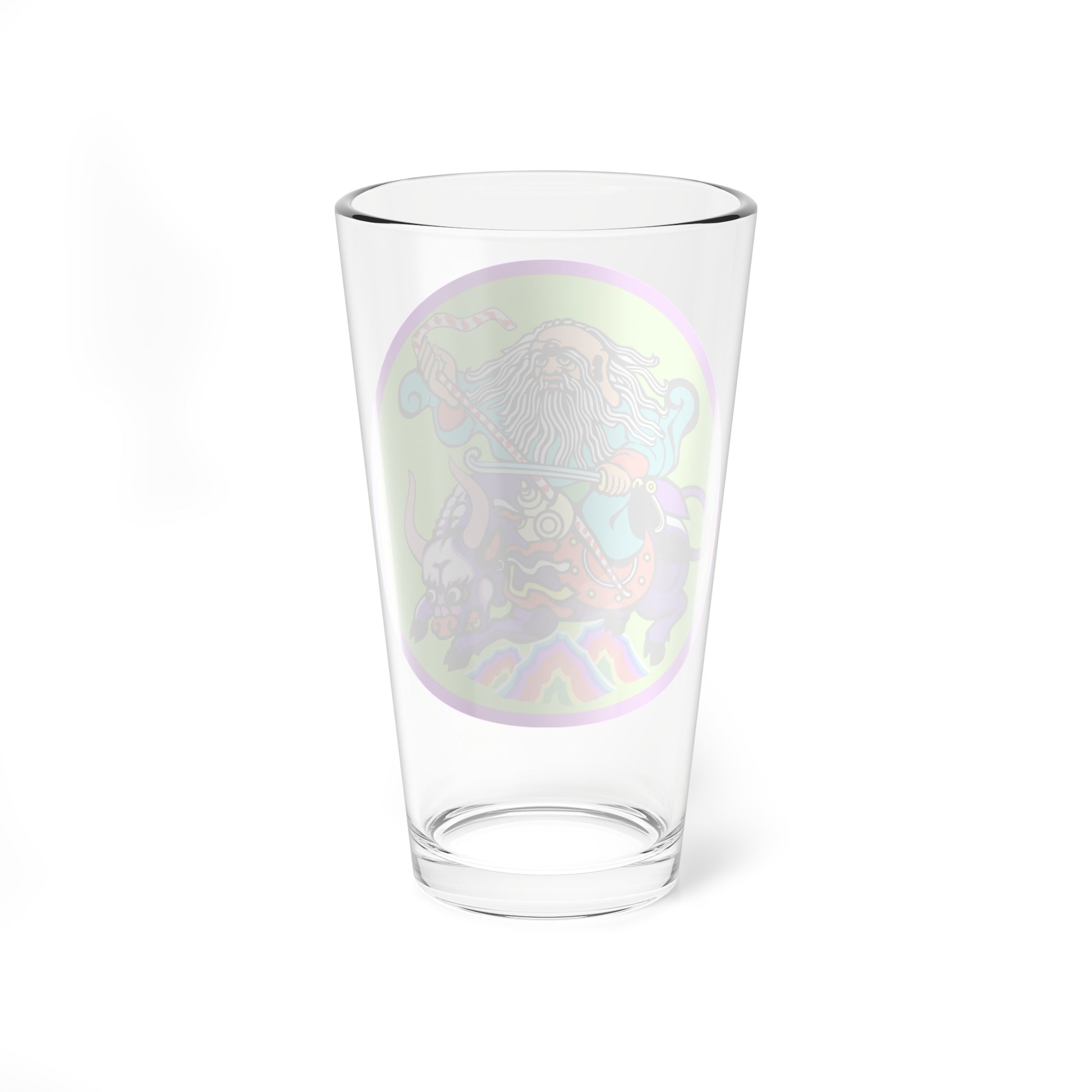 This pint glass showcases the vibrant and symbolic emblem of the Songino Khairkhan District in Ulaanbaatar, Mongolia. The design, rendered in vivid colors, is centered around a striking circular composition that embodies the district's unique identity.