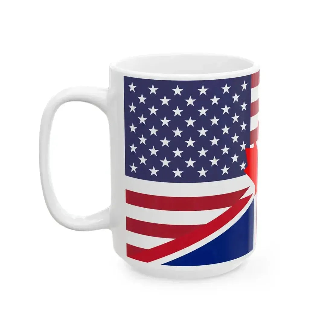 This white coffee mug showcases a unique blend of cultures, featuring iconic symbols from England, Canada, and the United States. On one side, you'll find the Red Maple Leaf โ€“ a symbol of Canada's vibrant heritage. The other side displays the Union Jack, representing the United Kingdom, and the Stars and Stripes, emblematic of the United States. This design is perfect for anyone who cherishes the shared history and cultural connections between these nations, making it an ideal gift for expats, travelers, or fans of international relations.