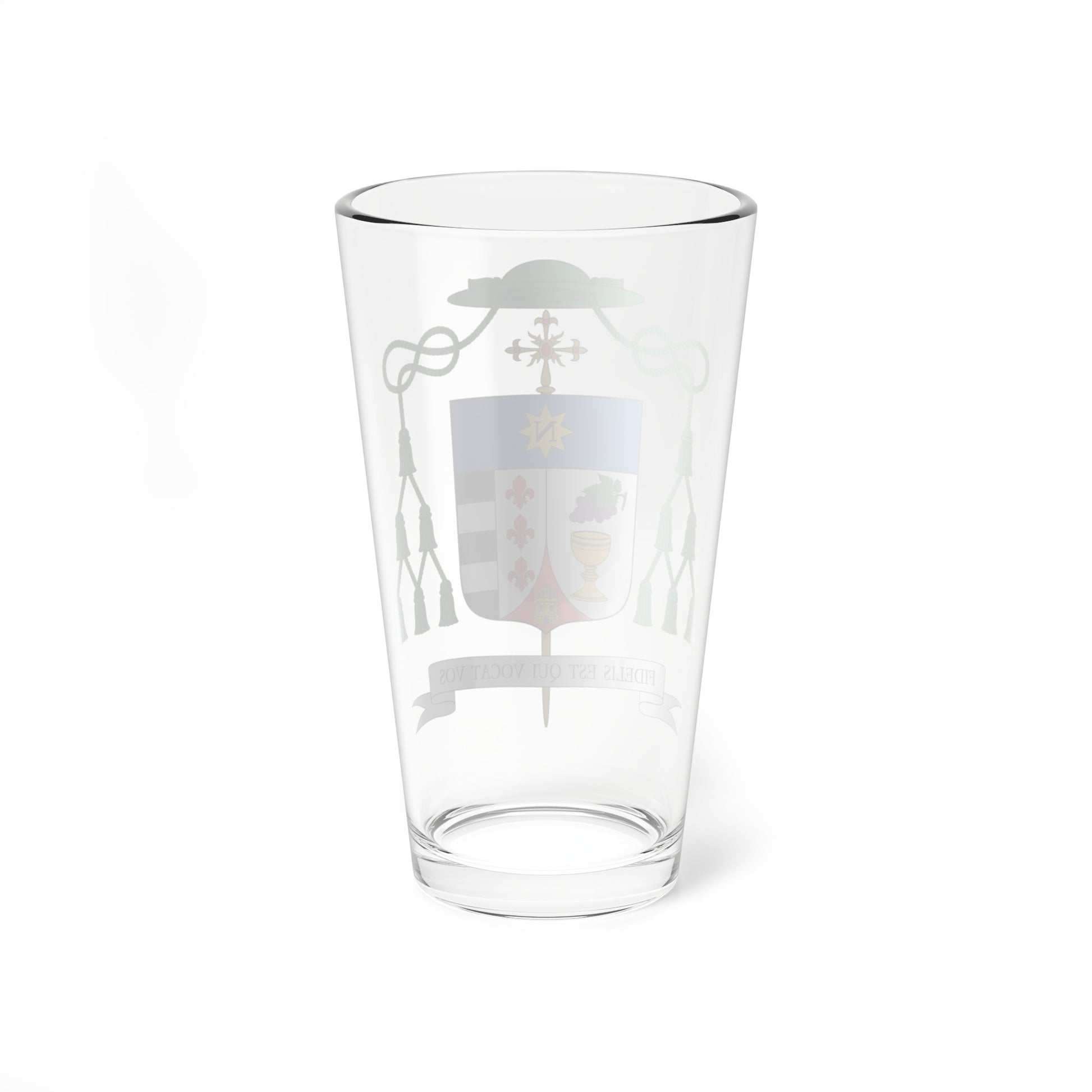This pint glass features the meticulously crafted coat of arms of Mons. Abilio Martínez Varea, reflecting his identity as the Bishop of Osma-Soria (and later, Ciudad Real). The design is rich with symbolism and rooted in Christian tradition.