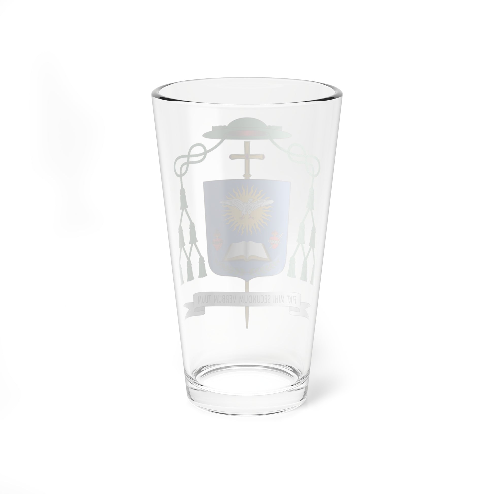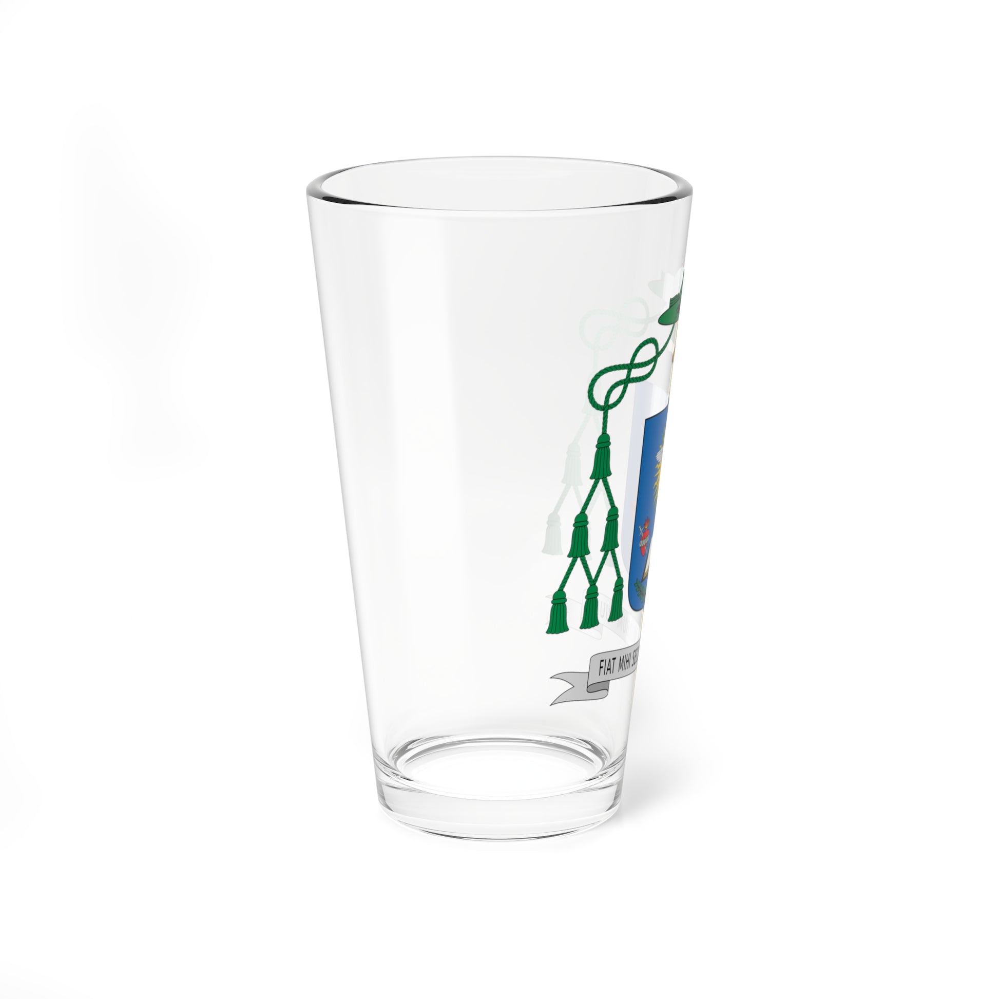 This pint glass features the stunning episcopal coat of arms of Bishop Adalberto Donadelli Júnior from the Diocese of Rio do Sul, Brazil. Inspired by his ordination in 2024, the design showcases a shield divided into two sections. The top section features a golden cross on a blue background, representing faith and spiritual authority. The bottom section boasts a golden lion rampant on a red field, symbolizing courage and leadership. Together, they represent the bishop's unwavering faith and his responsibility to guide his flock. This commemorative glass makes a unique and meaningful gift for bishops, religious enthusiasts, or anyone who appreciates the significance of faith and leadership.