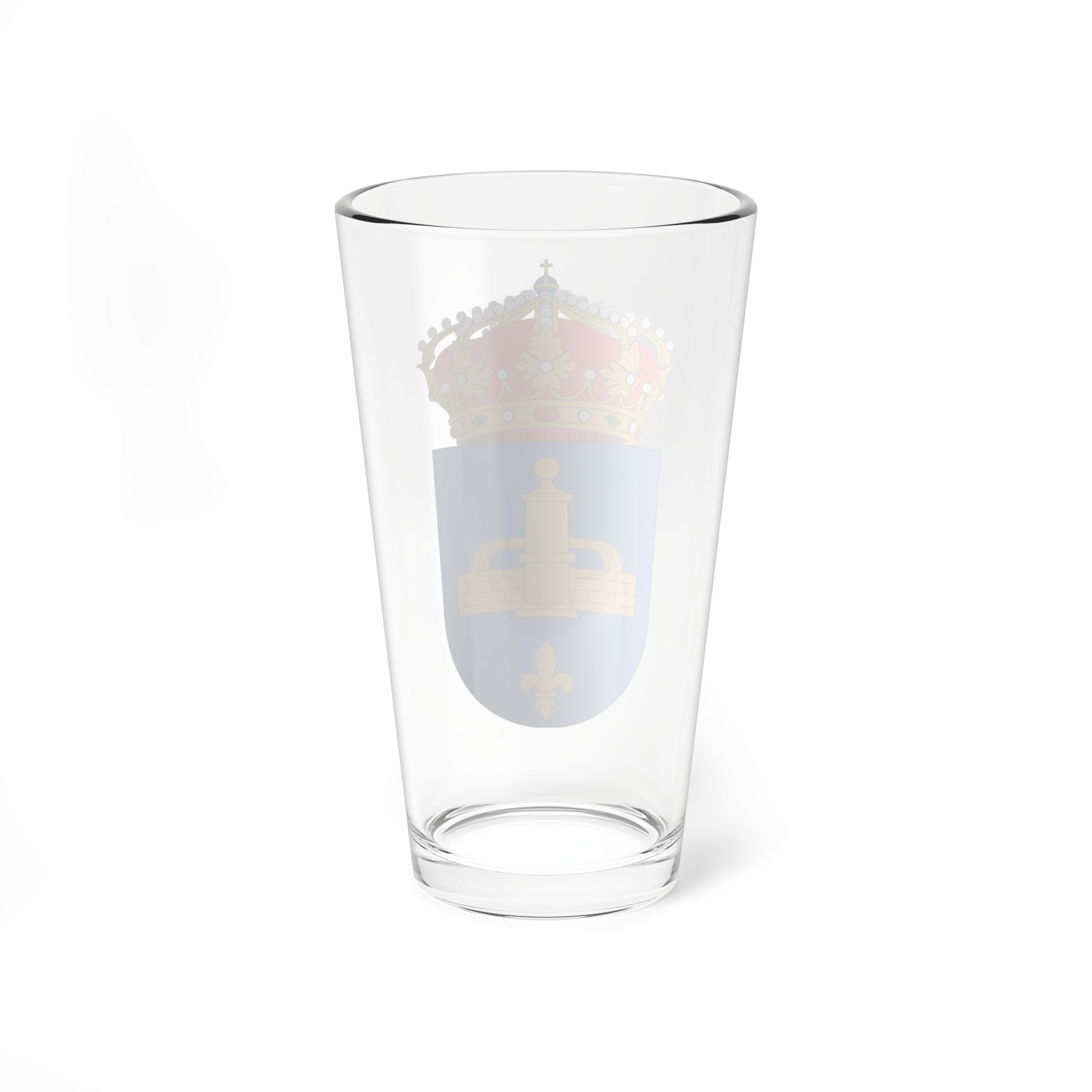 This pint glass showcases the official coat of arms of Aguaviva, a municipality in the province of Teruel, Aragón, Spain. The design captures the essence of the town's history and values through its heraldic elements.