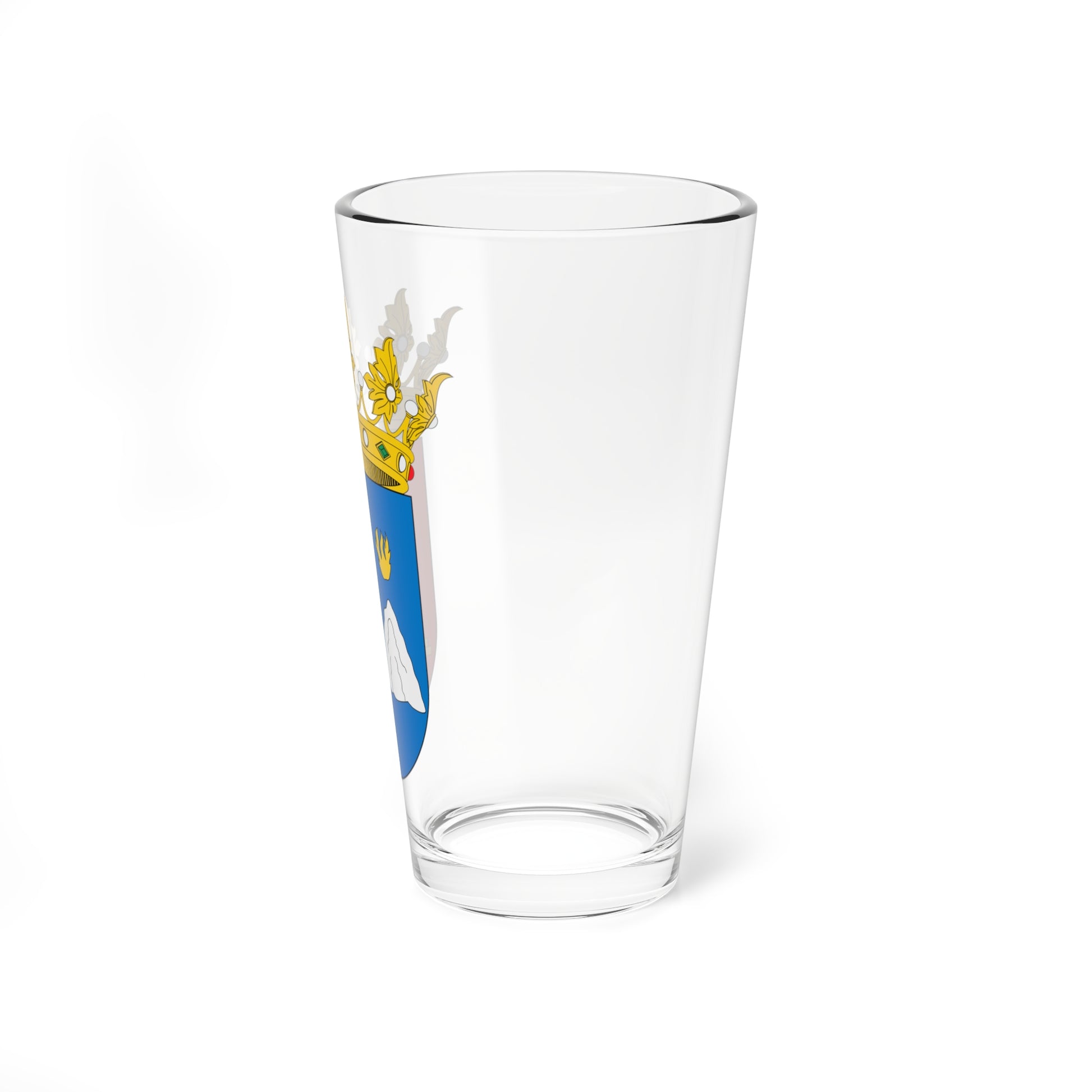 This pint glass showcases the striking coat of arms of Alcoleja, a municipality in the province of Alicante, Spain. The design is meticulously reproduced, bringing the heraldic artistry to life.