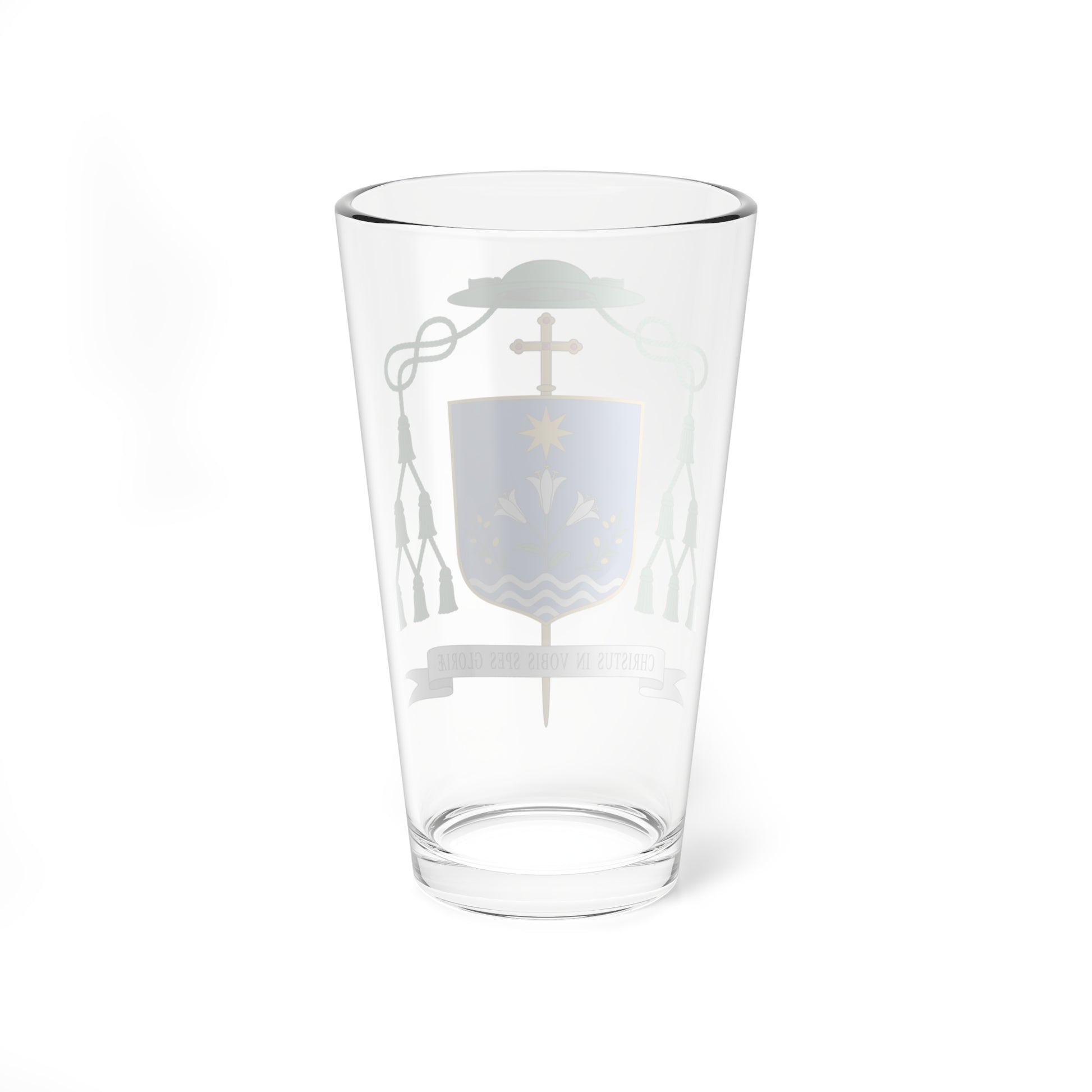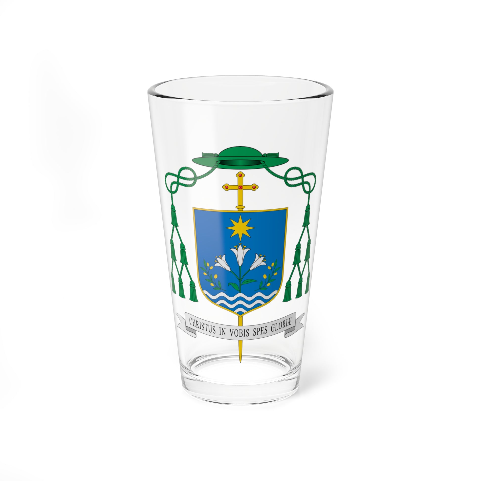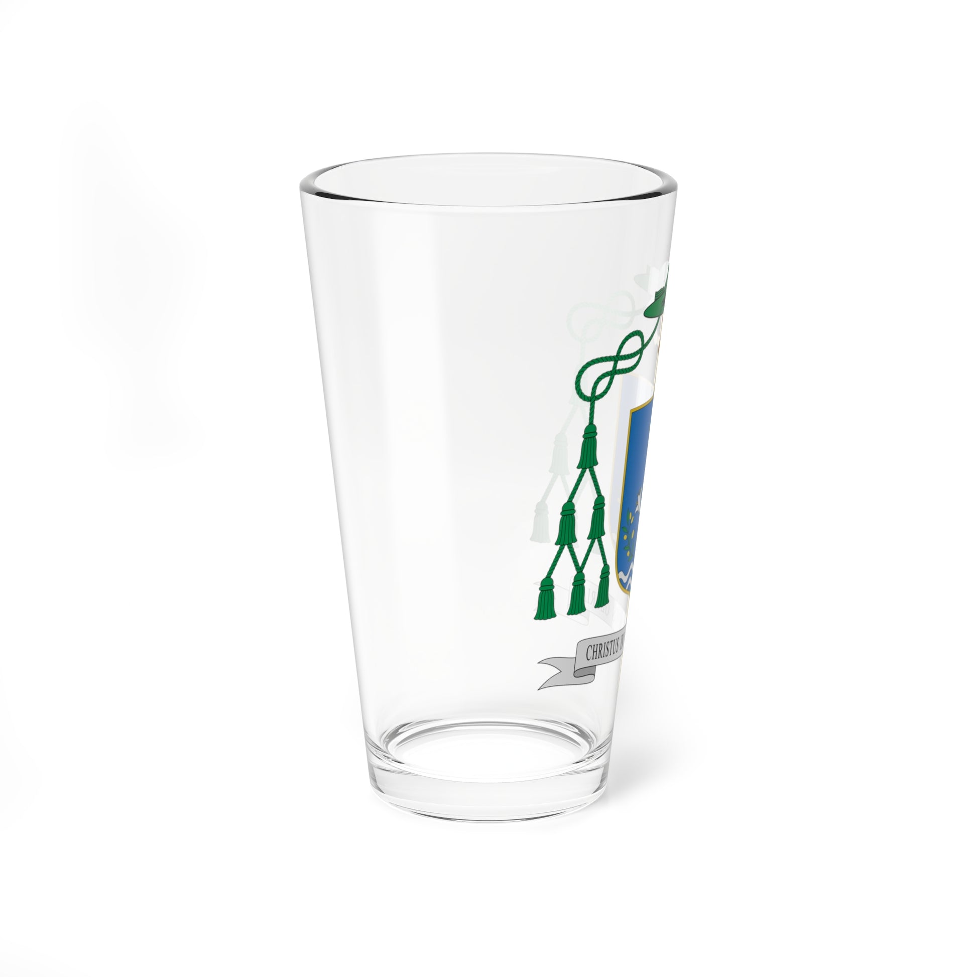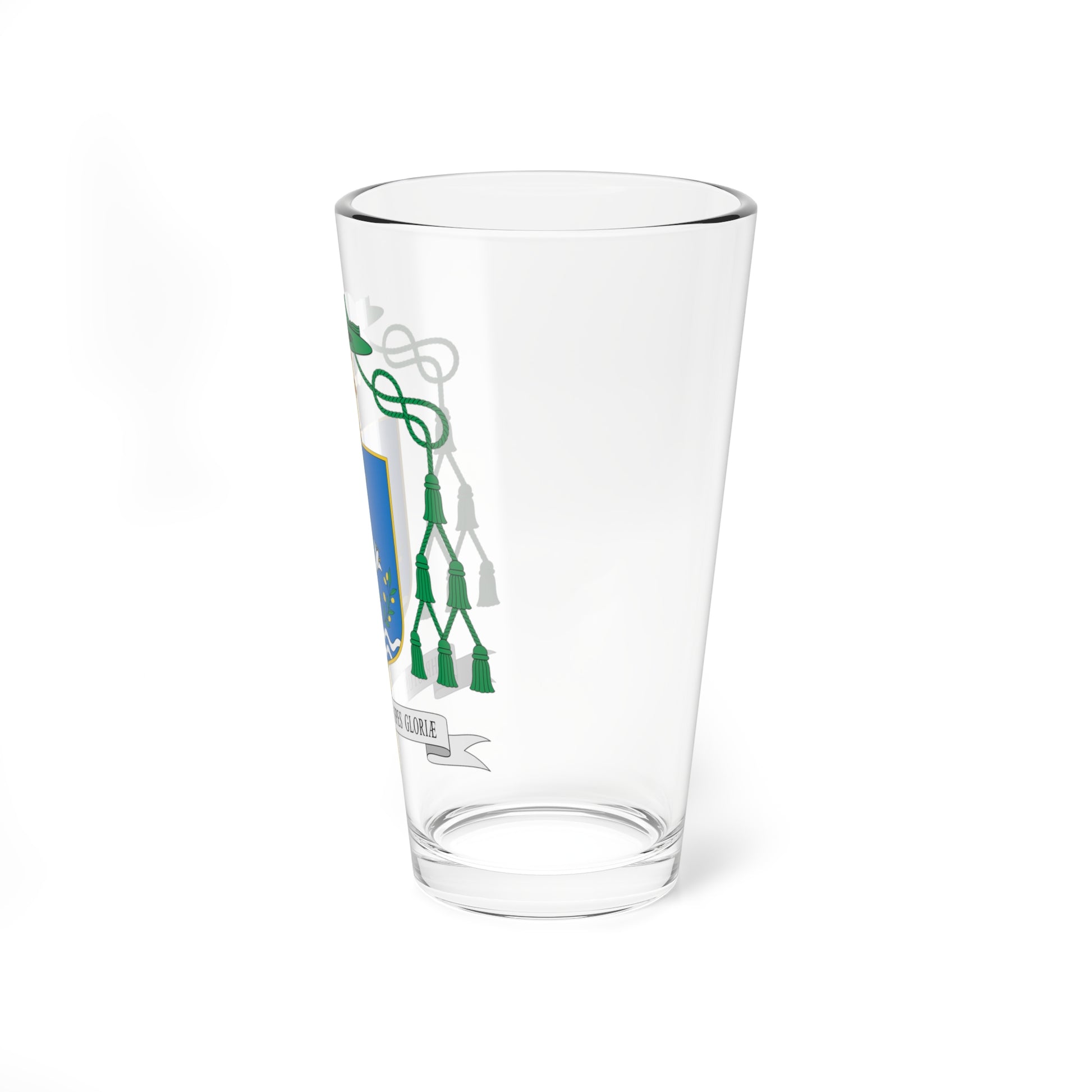 This pint glass features the majestic coat of arms of Antônio Carlos Paiva, a prominent figure in Spain. The design is inspired by the heraldry used by Paiva in his religious capacity. The intricate details of the coat of arms are beautifully rendered on the glossy surface of the glass, making it a true collector's item.