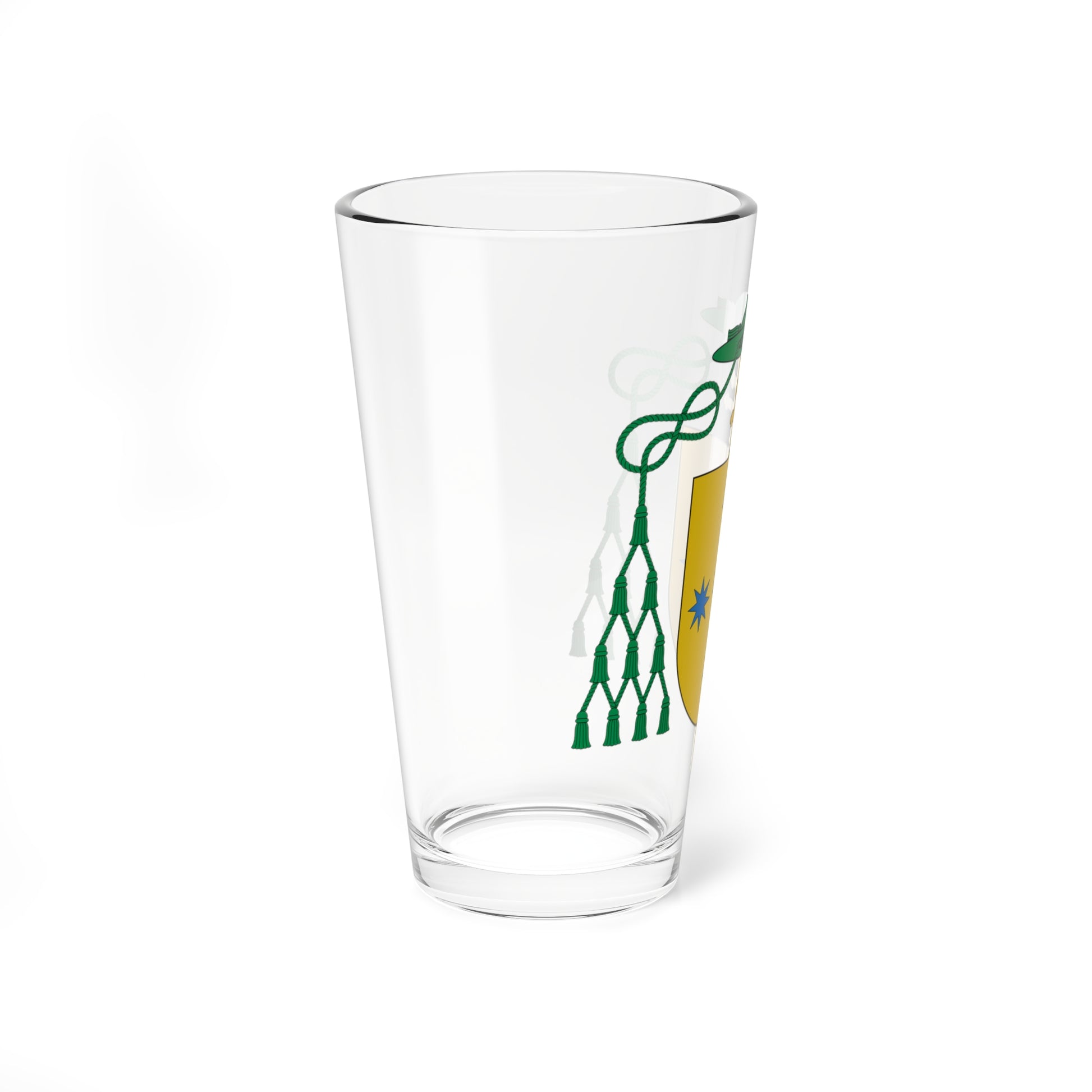 So, this pint glass features the coat of arms of Antonio de Rojas Manrique, a big shot in the Spanish church back in the 16th century. Think of it like a fancy family crest! The design's got a golden background with five blue stars arranged in a cross shape. It's like a celestial stamp from an ancient Spanish dignitary. And get this, the whole thing is super shiny and glossy, making it look like a piece of royal bling. ✨ Seems like a pretty impressive piece of drinkware for anyone who loves a touch of history and Spanish heritage.