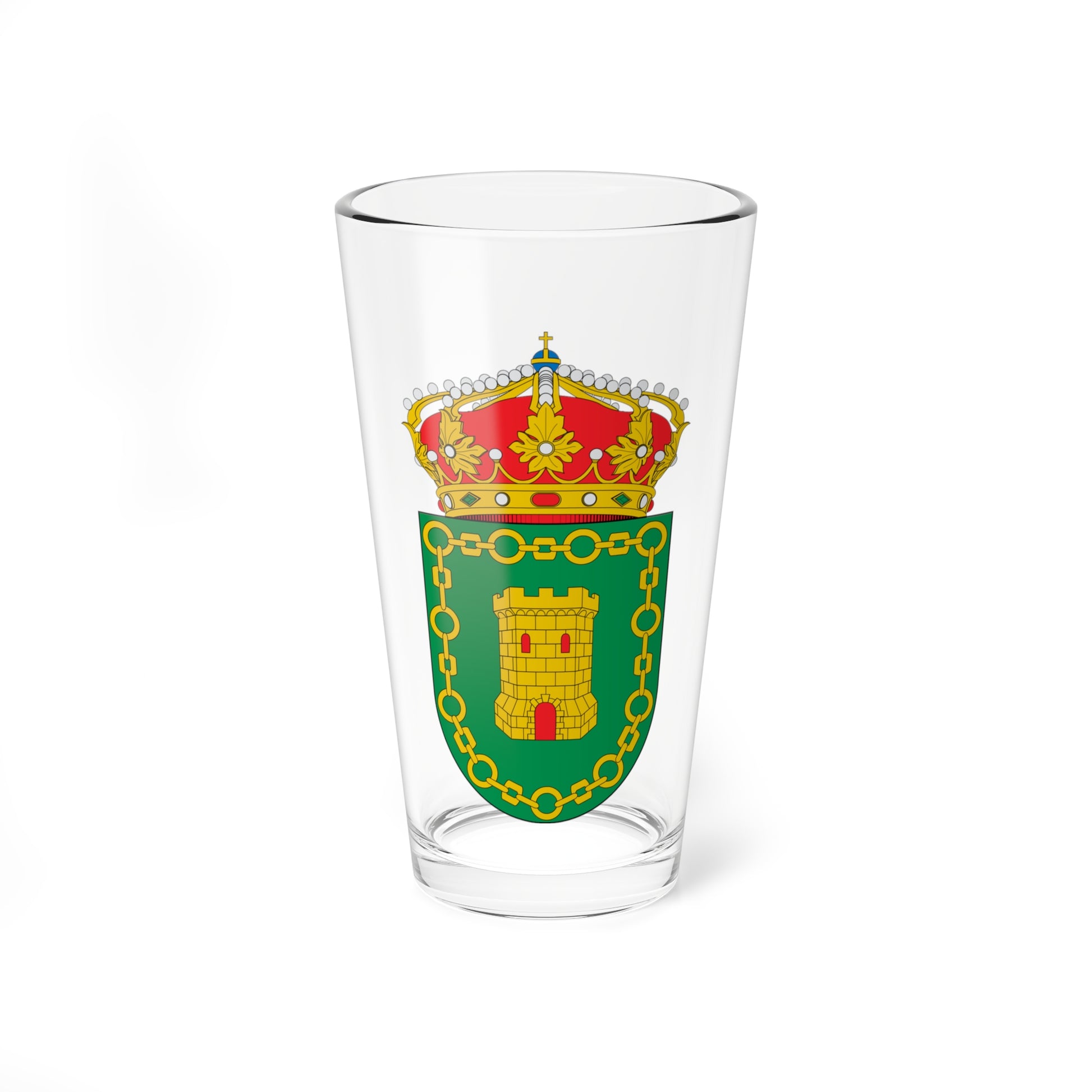 This pint glass showcases the official Coat of Arms of As Somozas, a municipality in Galicia, Spain. The design, rendered with precision, embodies the rich heraldic tradition of the region.