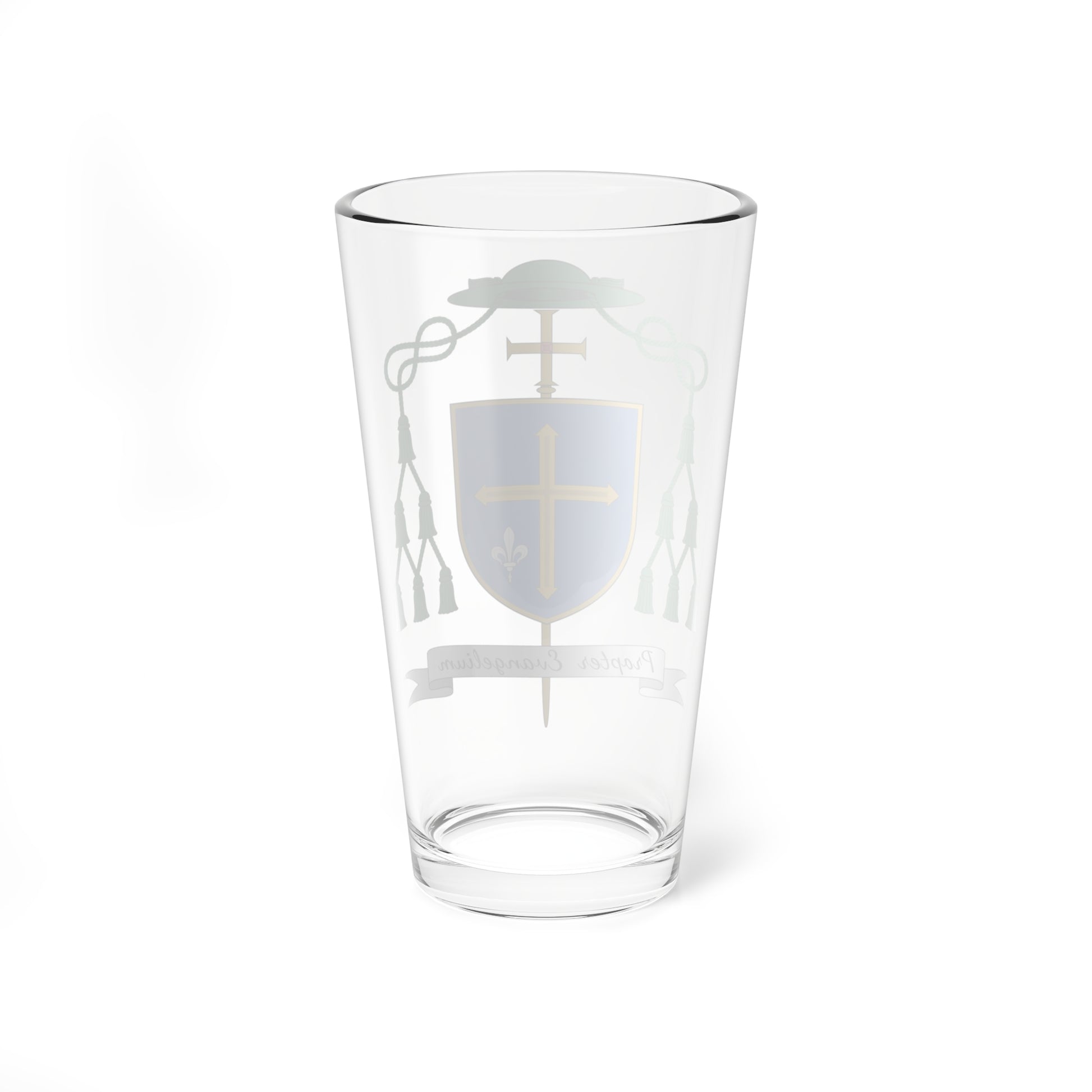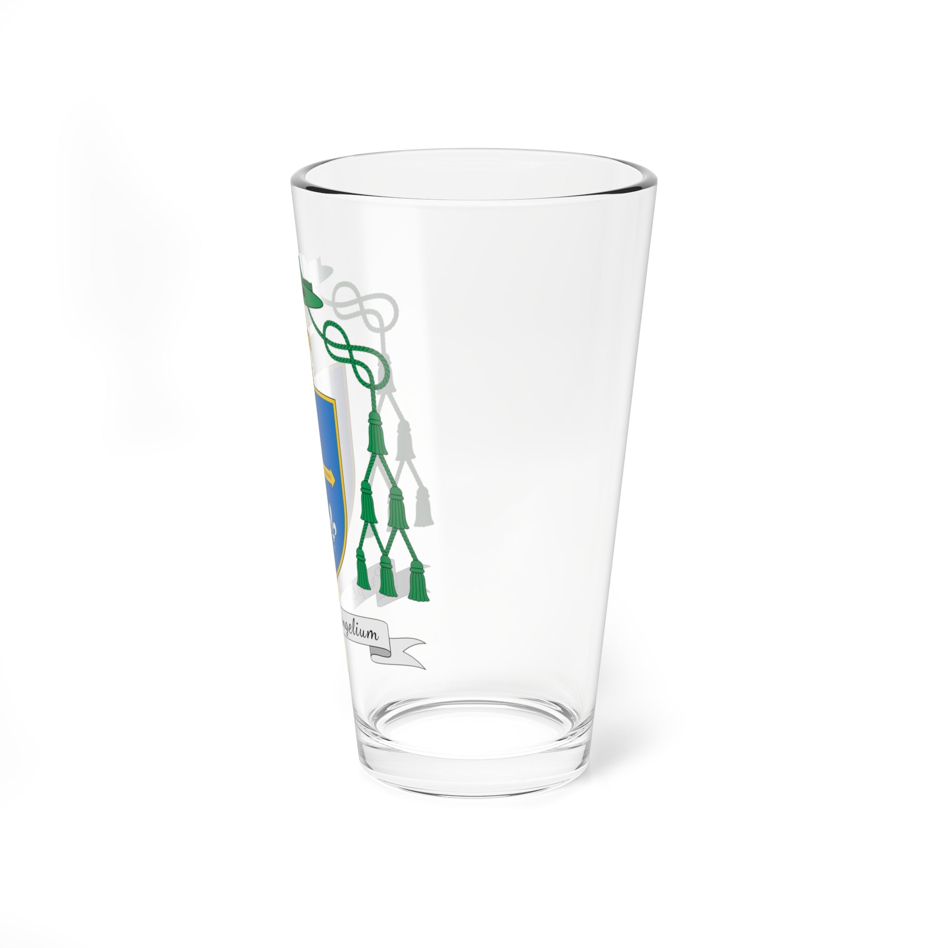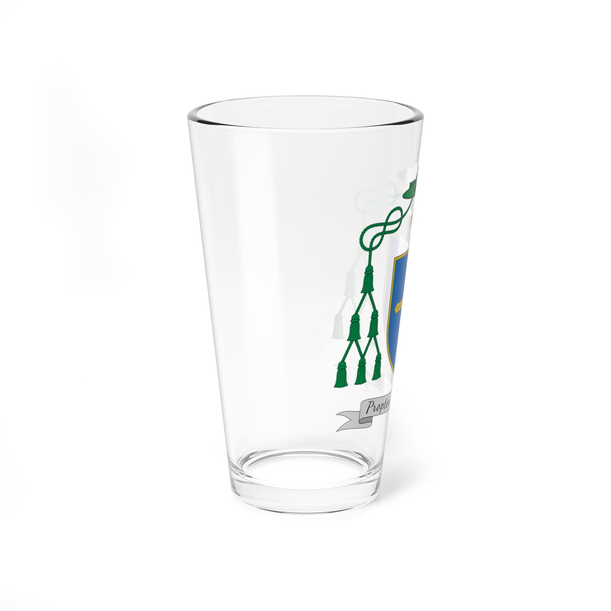 This pint glass showcases the personal coat of arms, or "Escudo de Bertilo João Morsch," of the Brazilian auxiliary bishop of the Archdiocese of Porto Alegre. The design, crafted by Macucal and available on Wikimedia Commons, presents a striking visual representation of the bishop's heraldic identity.