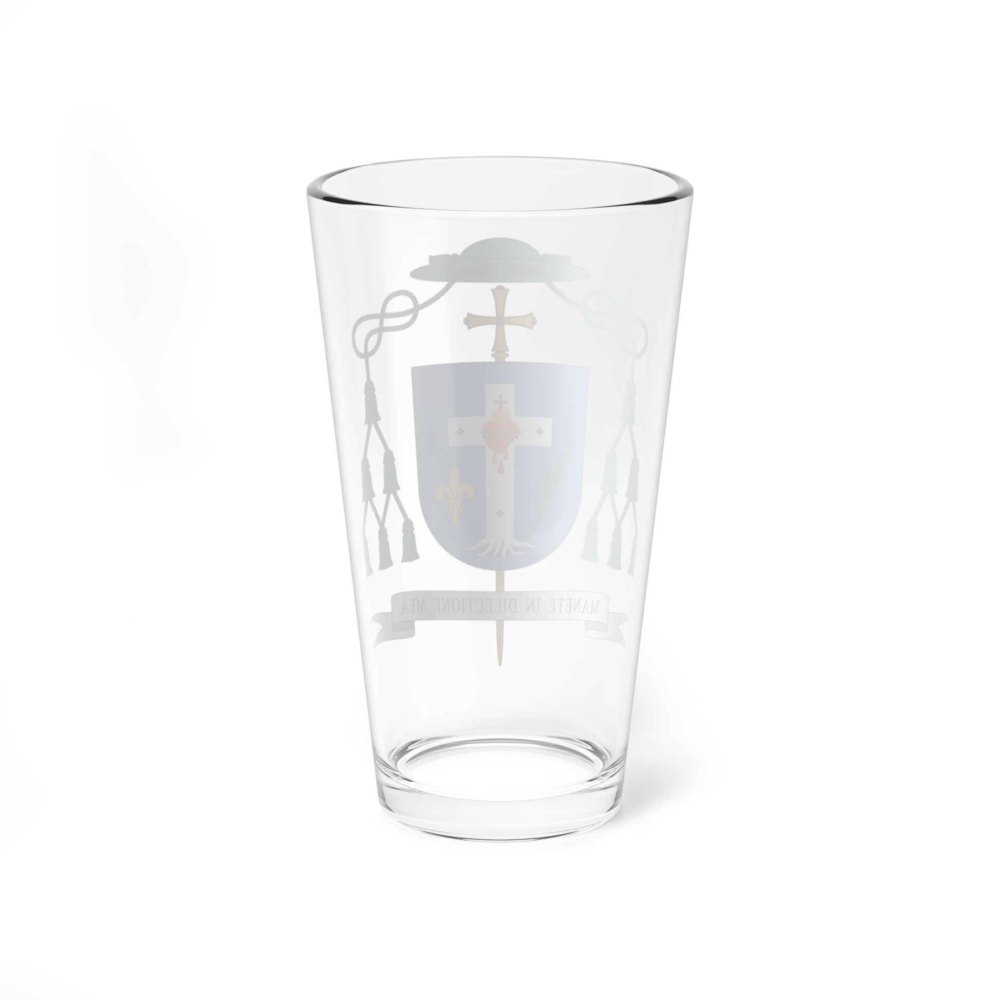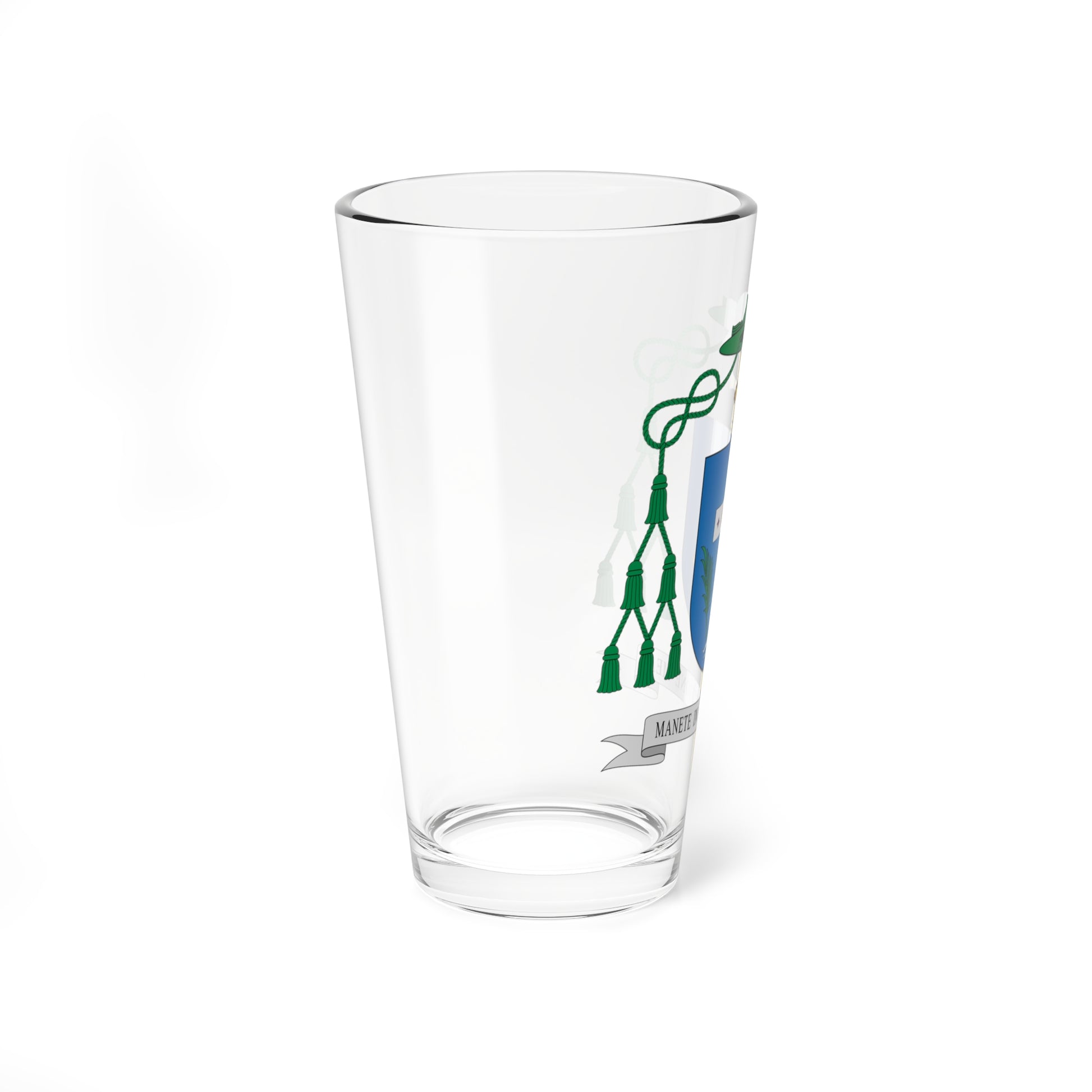 This pint glass showcases the heraldic design of Dom Danival Milagres Coelho, Bishop of Vatarba and Auxiliary Bishop of Goiânia. The artwork presents a vibrant and symbolic representation of faith and service.