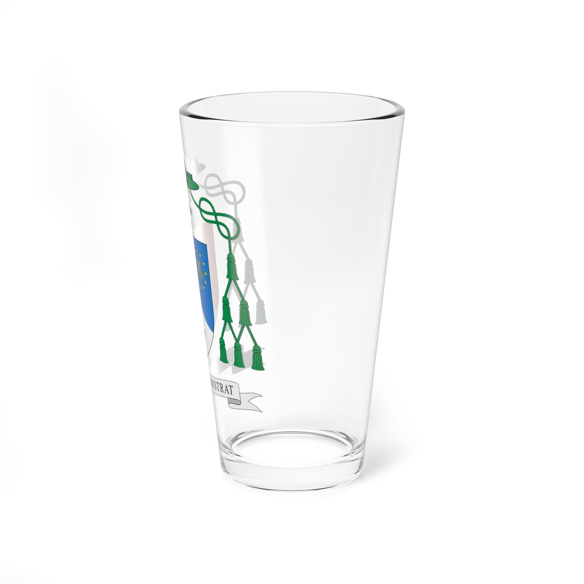 This pint glass showcases the heraldic design of the "Escudo de Eldison de Souza Silva," the personal coat of arms of the Brazilian Catholic priest, Edilson de Souza Silva.