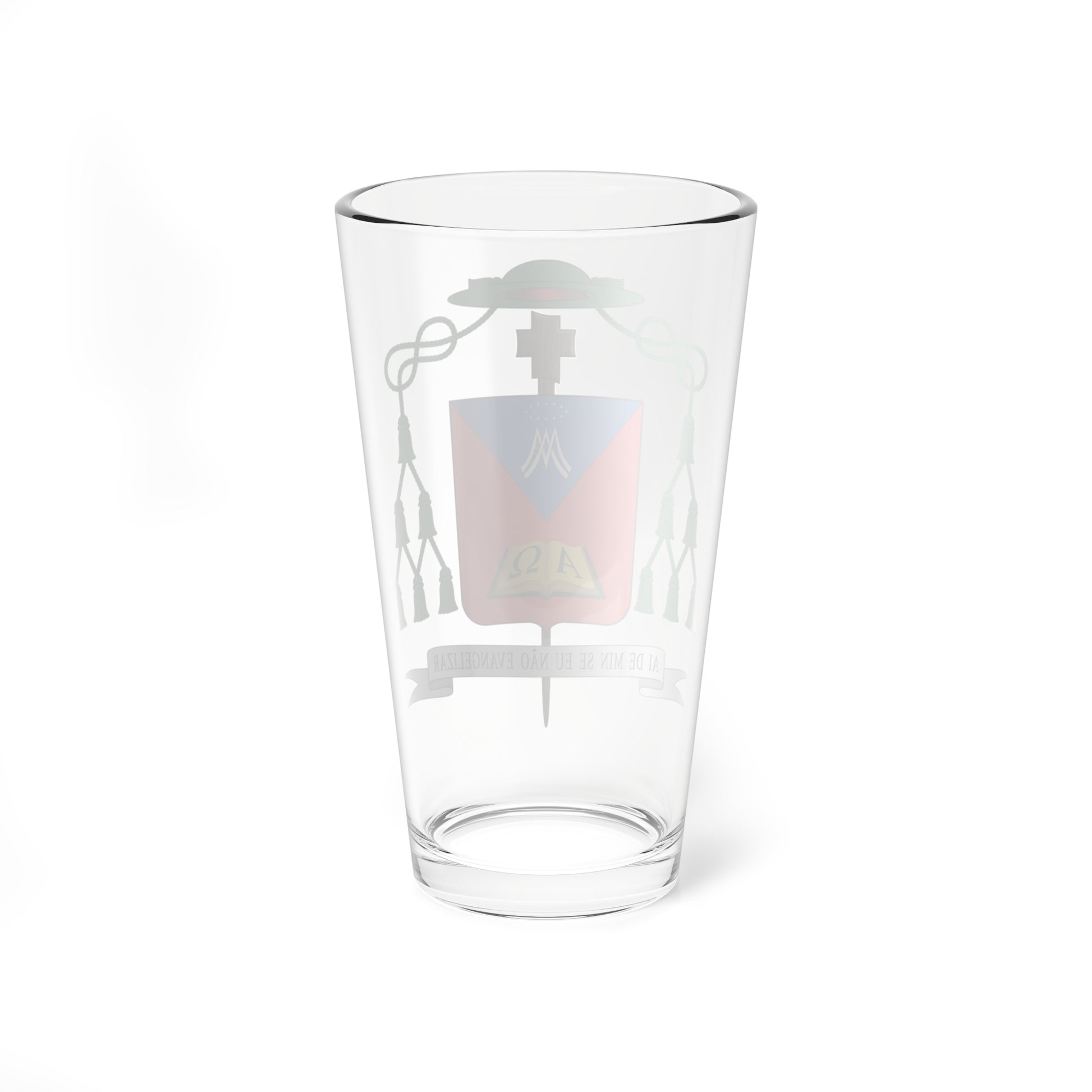This pint glass showcases the unique ecclesiastical coat of arms of Bishop Estevam dos Santos Silva Filho. The design, rendered in a classic heraldic style, is a visual testament to his position within the Catholic Church.