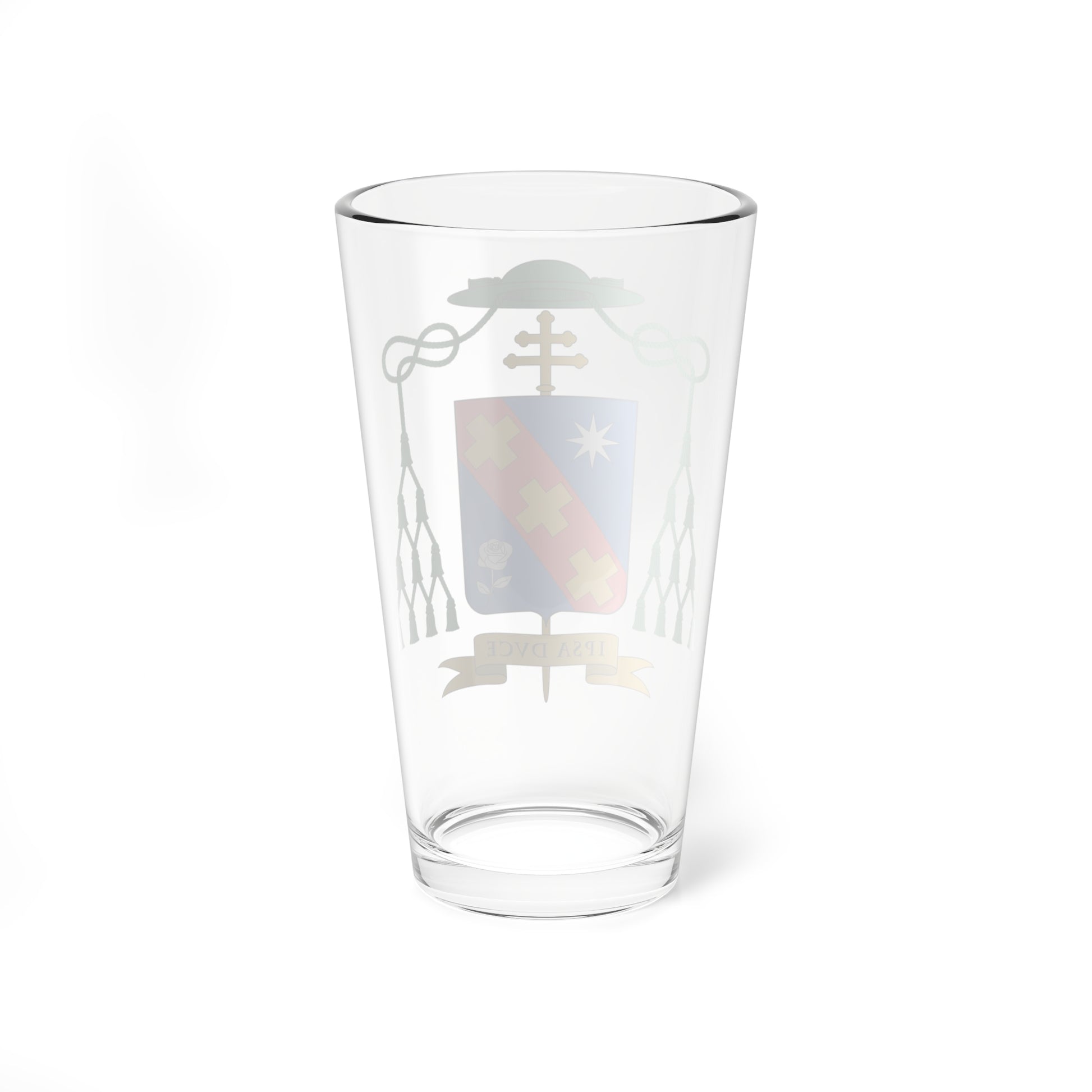 Raise a glass to the memory of Archbishop Fernando Sáenz Lacalle with this exquisitely designed pint glass. The artwork adorning the glass captures the essence of his ecclesiastical heraldry, a visual testament to his role and service.