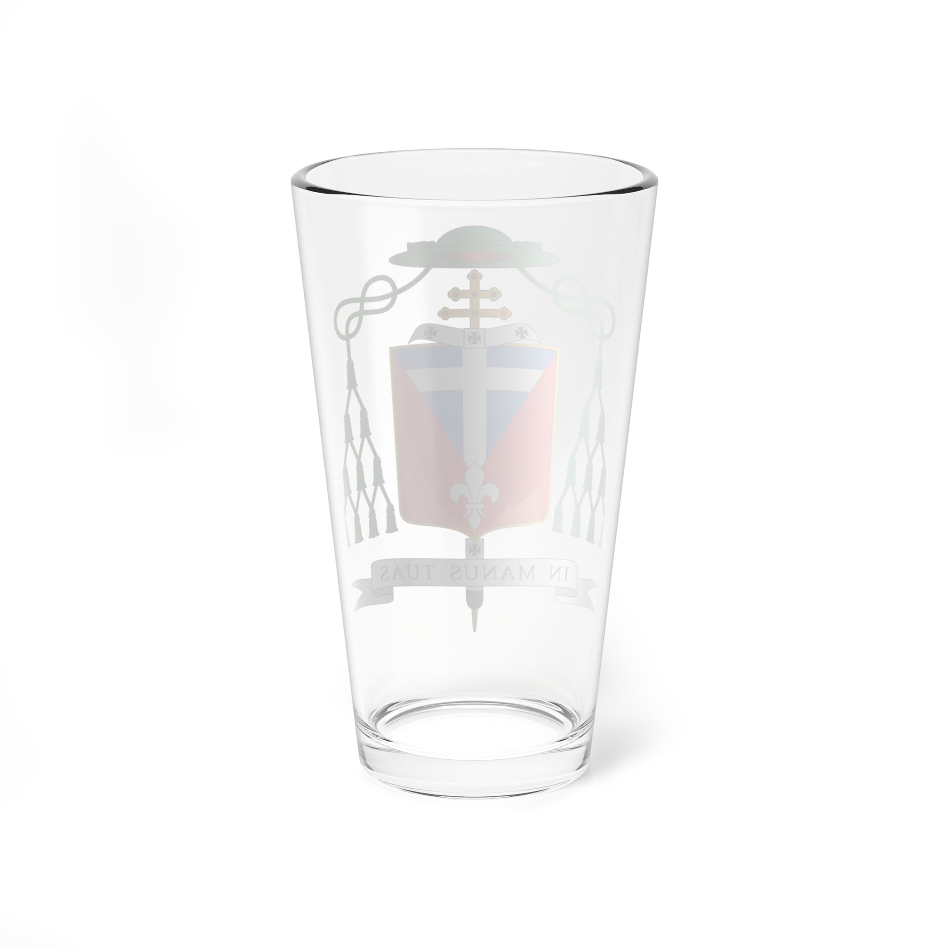 This pint glass showcases the heraldic artistry of the "Escudo de Francisco Carlos Bach," the personal coat of arms of Bishop Francisco Carlos Bach. The design, a testament to ecclesiastical heraldry, is a visually compelling emblem of faith and heritage.