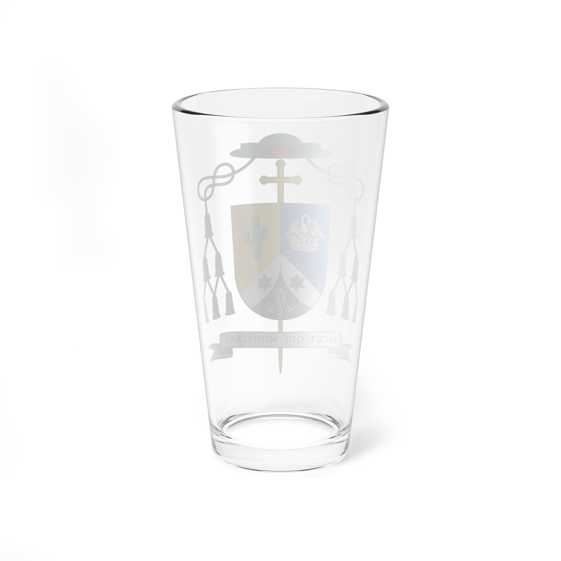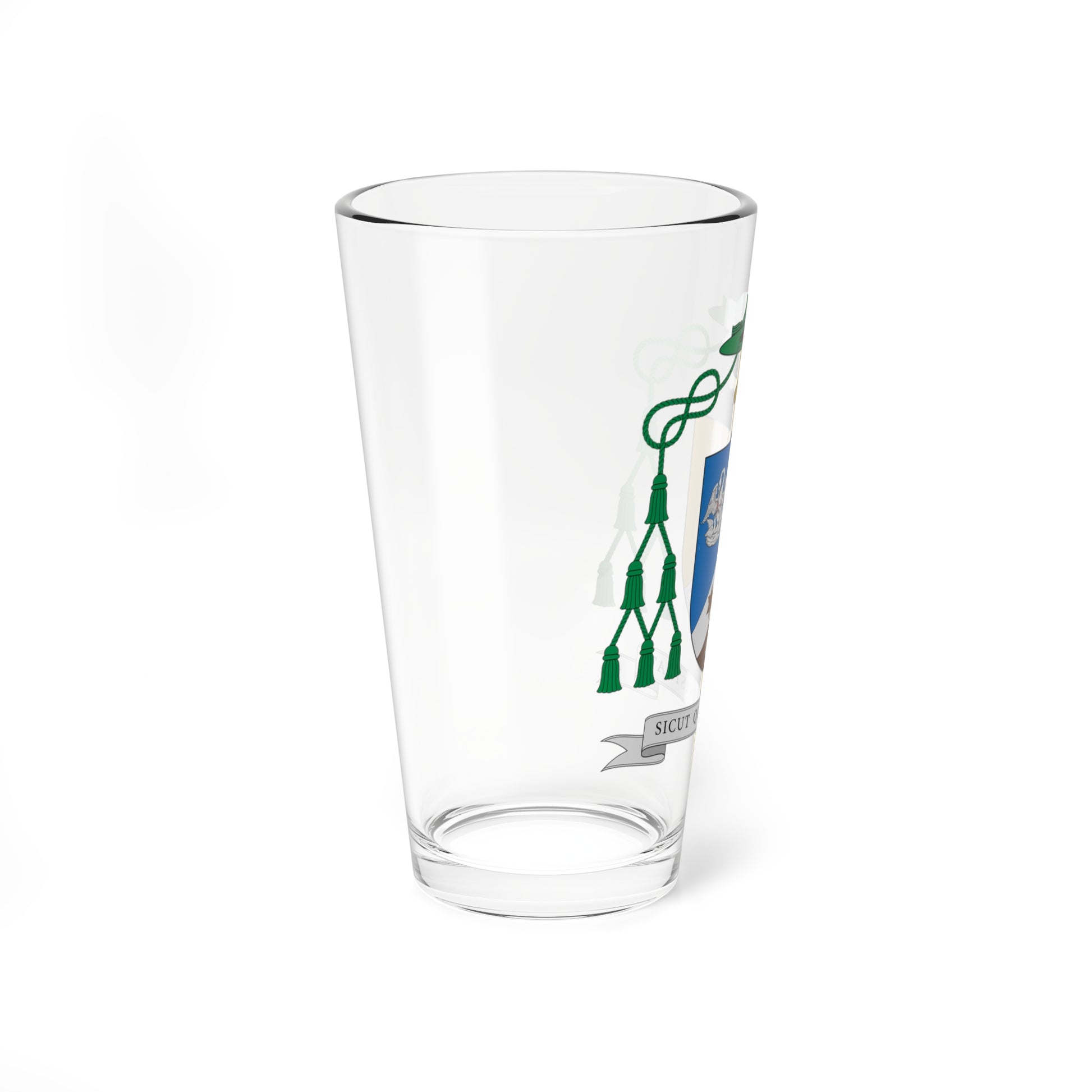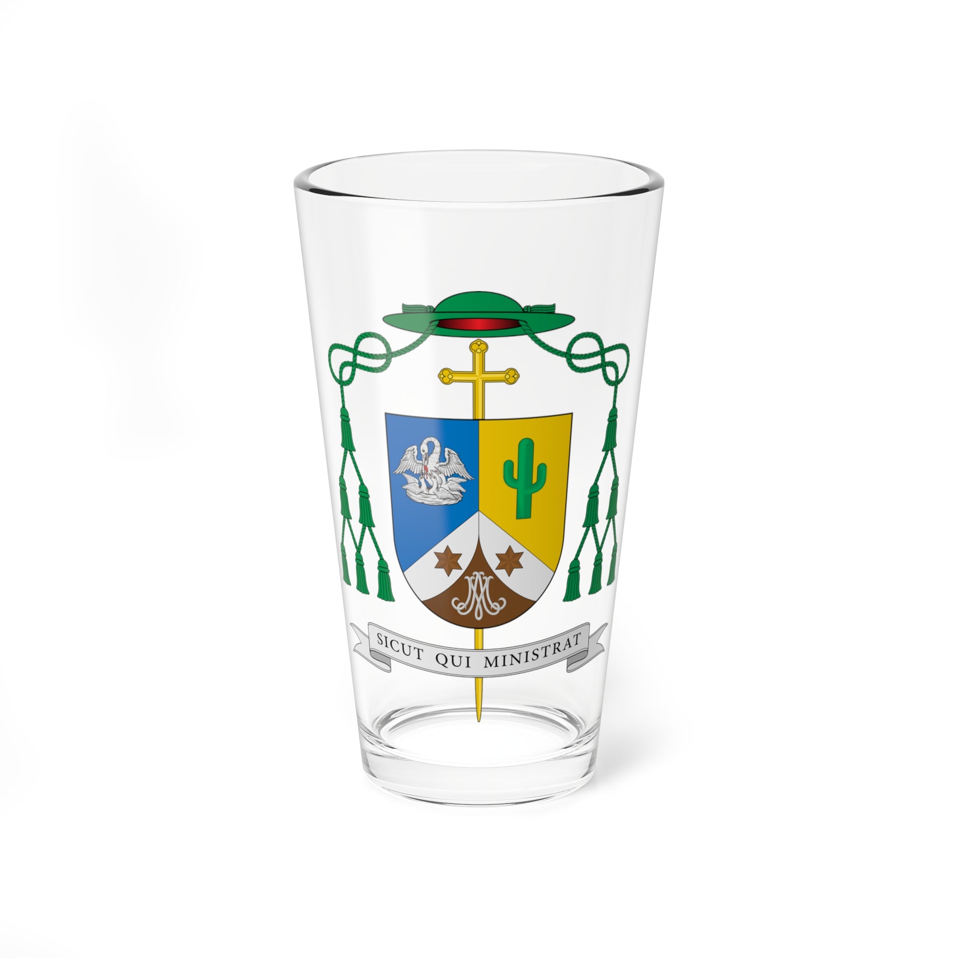 This pint glass showcases the ecclesiastical coat of arms of Bishop Francisco de Sales Alencar Batista. The design is a vibrant representation of his personal heraldry, a visual declaration of his faith and service.