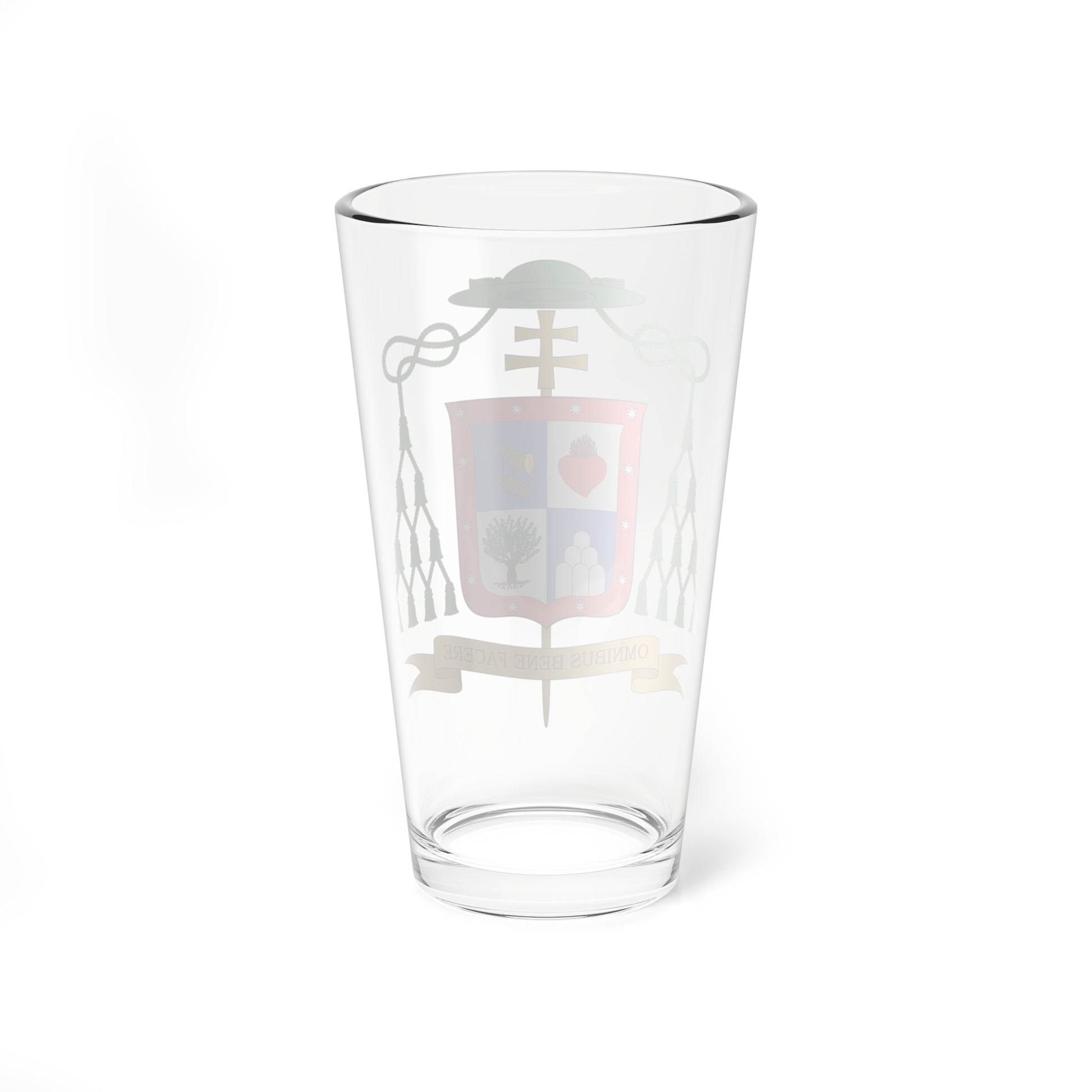 Hey, did you see that epic pint glass with the fancy coat of arms on it? That's the personal emblem of Jesús Suárez Párraga, a super respected bishop from Spain. The design is straight out of heraldry, which is like an ancient code of symbols used by royalty and important figures. It's like a mini-history book on a glass! I tell ya, whoever designed this had a serious appreciation for timeless elegance. 😎