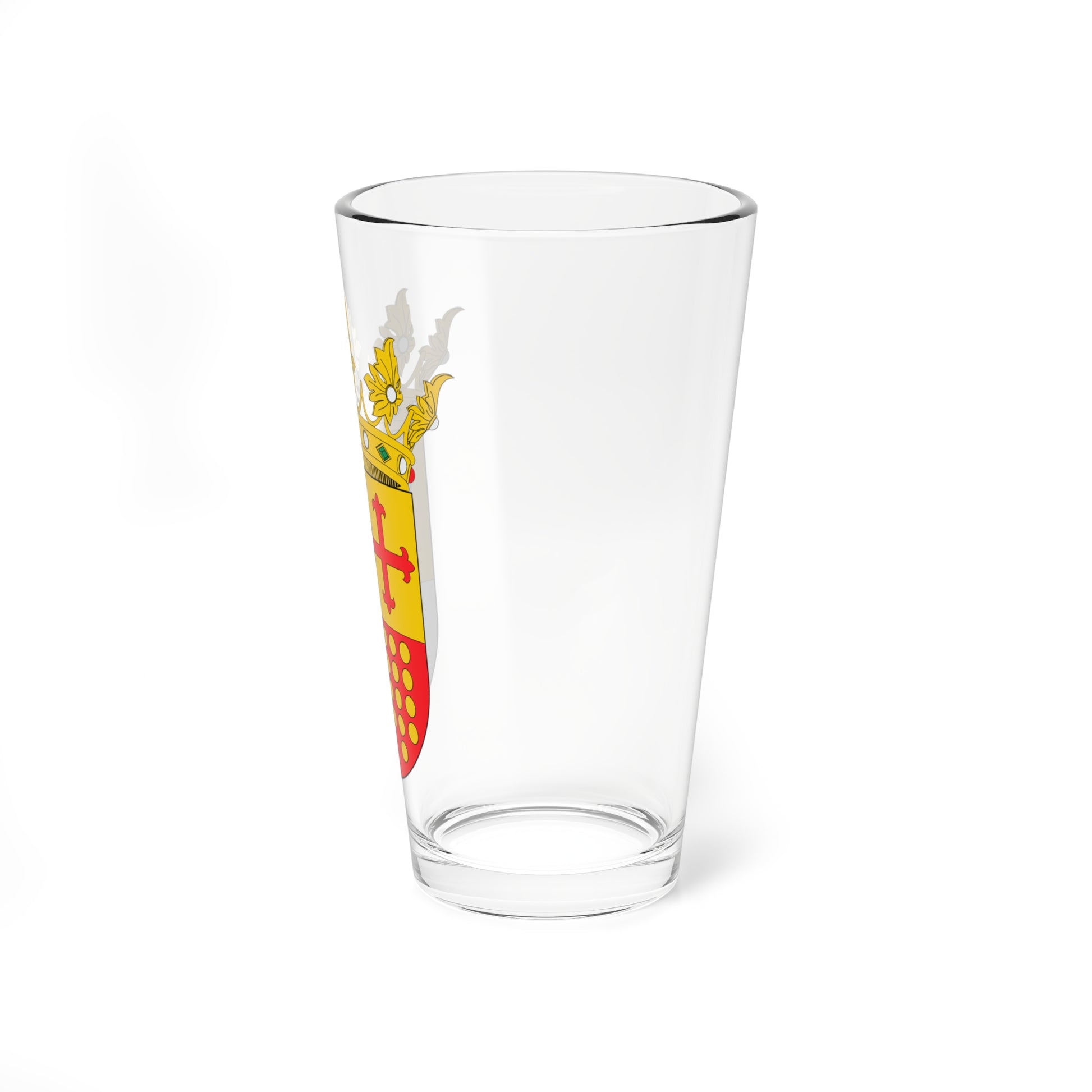 This striking pint glass features the historically significant coat of arms of the Dukes of Atrisco, a Spanish noble title. The design is a captivating visual representation of noble heritage and authority, perfect for admirers of heraldry and history.