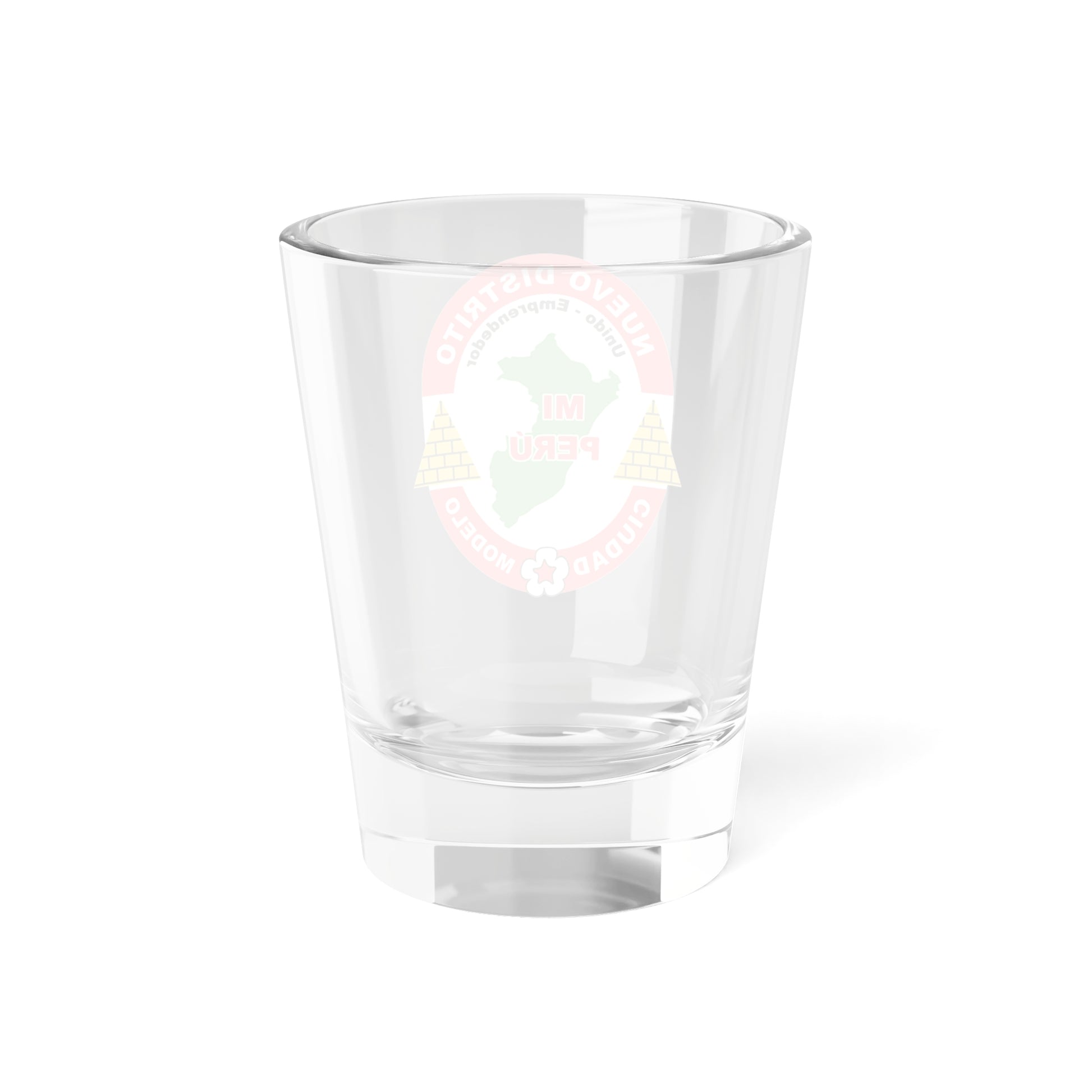 This shot glass showcases the vibrant and meaningful design of the Escudo de Mi Perú, the official coat of arms of the District of Mi Perú, located in the Province of Callao, Peru.