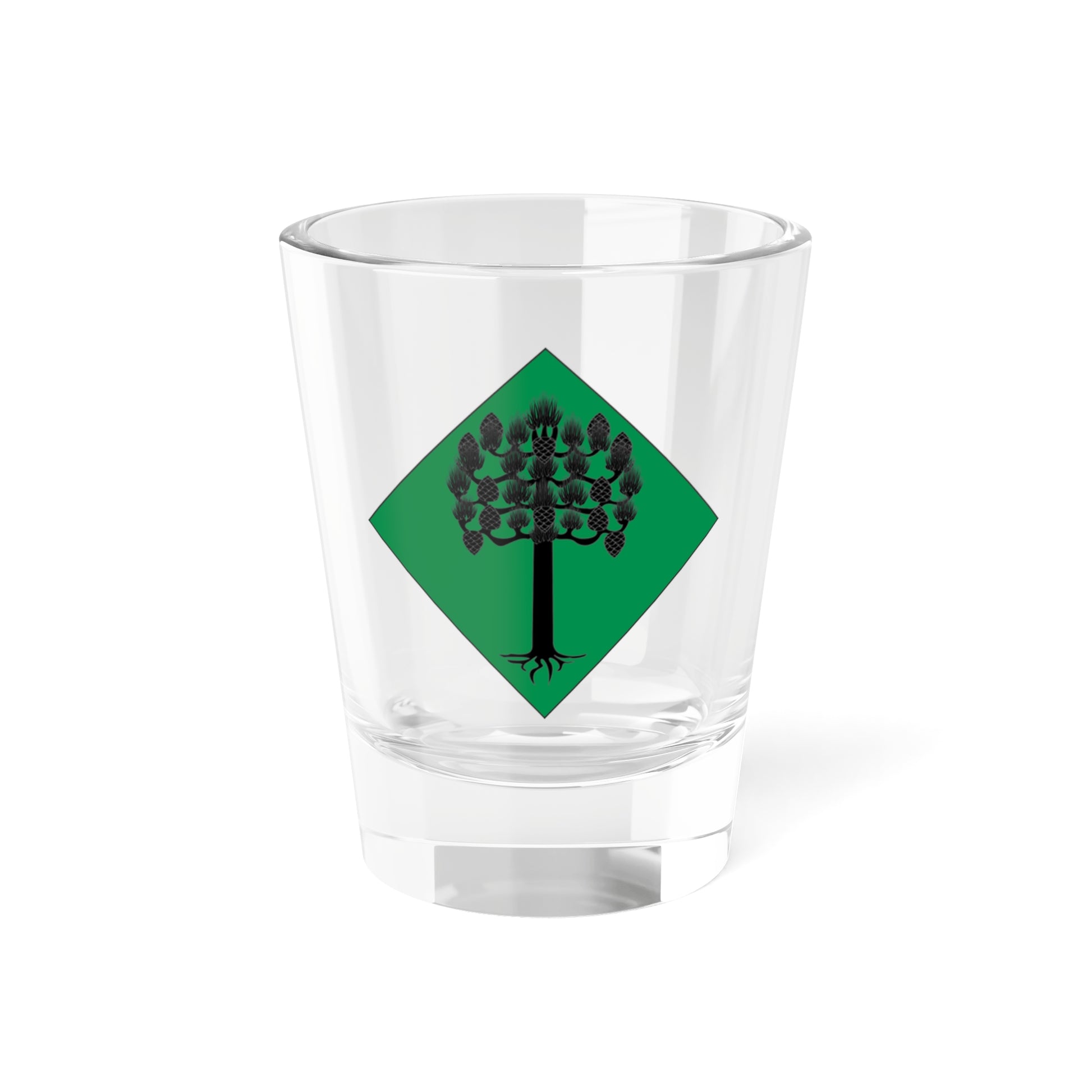 This shot glass showcases the heraldic emblem, or Coat of Arms, of Pi, a locality in the Baja Cerdaña region of Catalonia, Spain. The design is a striking representation of the town's identity and history, rendered in a simple yet powerful visual language.