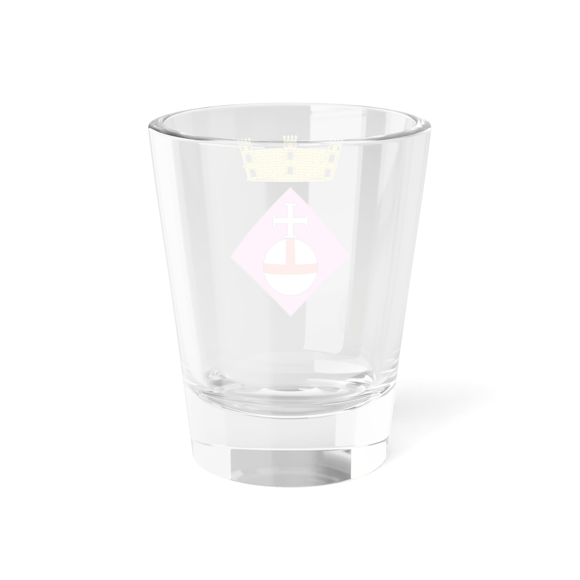 This shot glass showcases the official coat of arms, or Escut d'Albatàrrec, of the Spanish village of Albatàrrec. The design is a striking representation of the municipality's heritage and identity, rendered with meticulous detail.