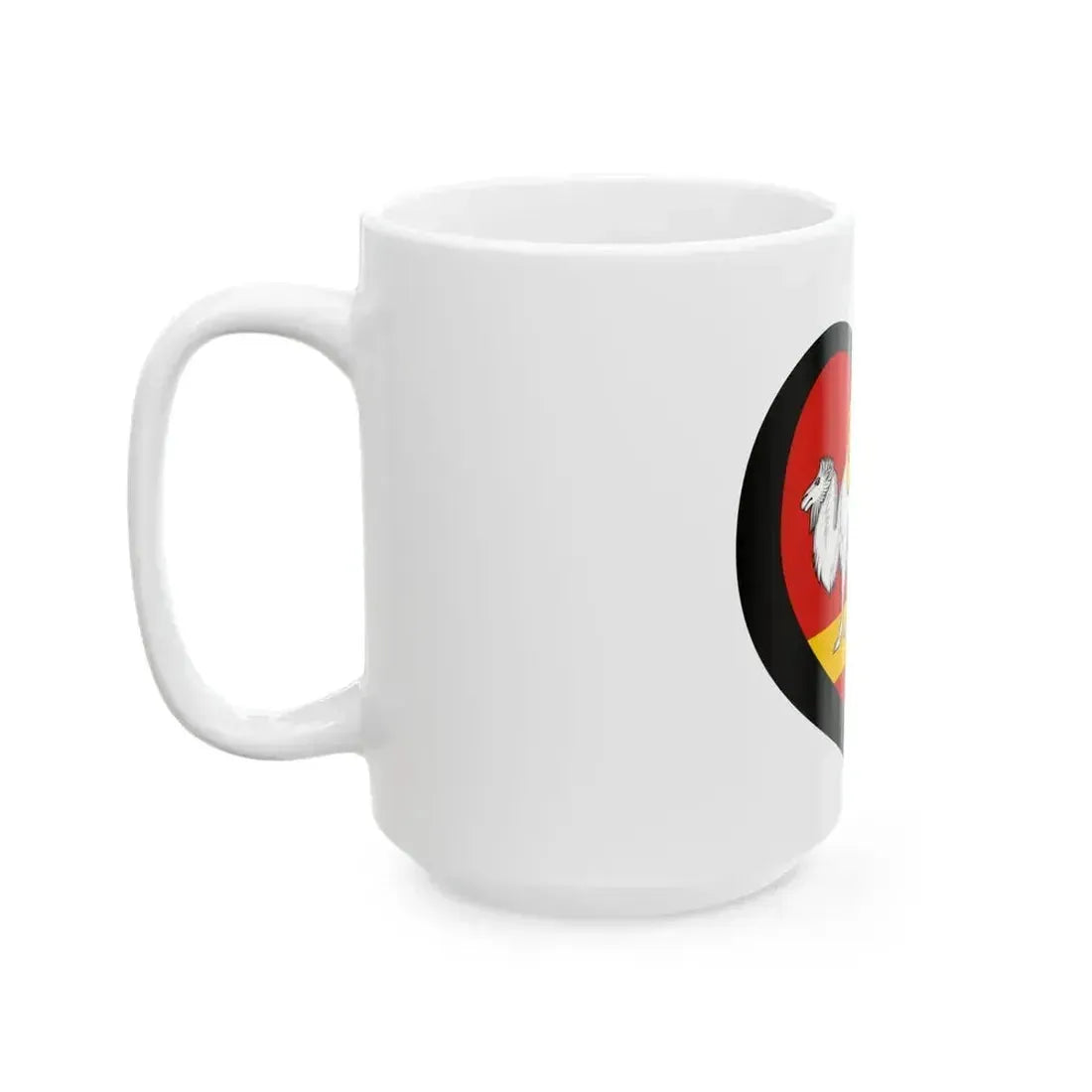 Sturdy white ceramic mugs available in 11 oz (≈330 ml) and 15 oz (≈440 ml), with a glossy finish and comfortable C-handle — microwave and dishwasher safe, and made from lead- and BPA-free materials.