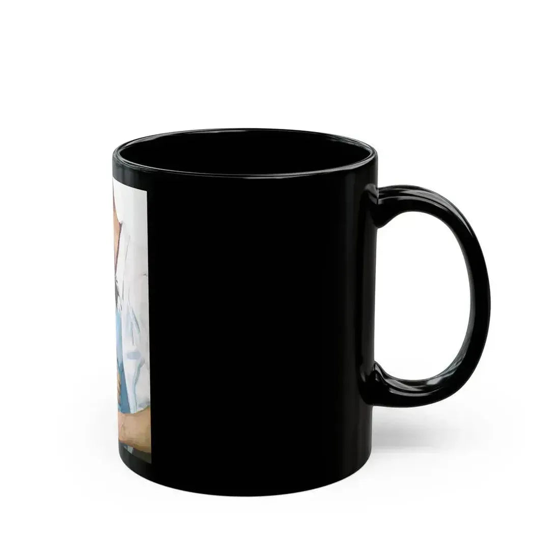 The mug itself is practical, holding a standard coffee or beverage amount, making it perfect for daily use or gift-giving occasions. With its timeless design and association with a celebrated artist and era, this Every Nice Girl by Rona Randall, Woman magazine, 1960 - Black Coffee Mug is sure to add charm and character to any kitchen or coffee table. Perfect for anyone who appreciates unique and cool drinkware, especially those drawn to vintage art and pop culture memorabilia.