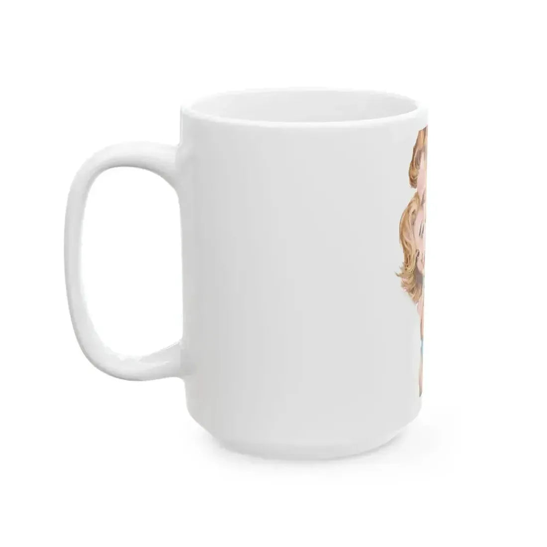 The "Every Nice Girl by Rona Randall, Woman magazine, 1960 - White Coffee Mug" is a nostalgic piece of mid-century pop culture, showcasing a design inspired by a comic strip from the iconic Woman magazine. The comic, titled "Every Nice Girl," was penned by the talented Rona Randall and first appeared in 1960. The mug features a charming illustration depicting the titular character, Every Nice Girl, with her signature red bow and cheerful demeanor. This unique drinkware item appeals to collectors of vintage artwork, nostalgia enthusiasts, and fans of Rona Randall's work.