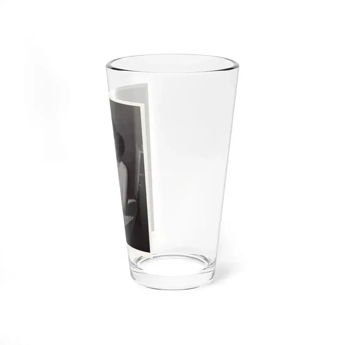 This 16oz pint glass showcases a black-and-white reproduction of one of Domergue's most iconic photographs, capturing her striking beauty and allure. The design, with its classic appeal, is perfect for anyone who appreciates unique and cool drinkware, as well as fans and collectors of vintage Hollywood memorabilia.
