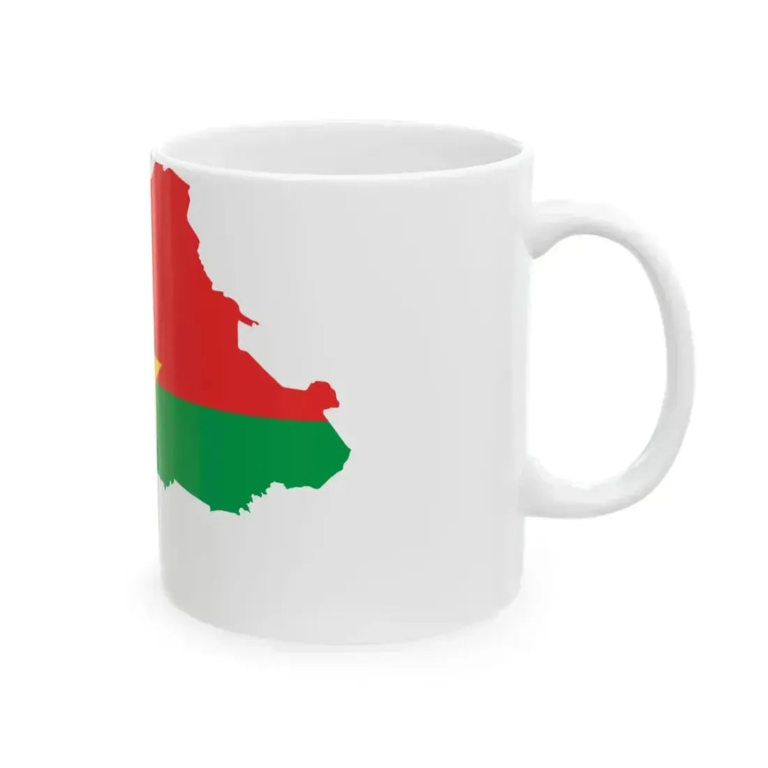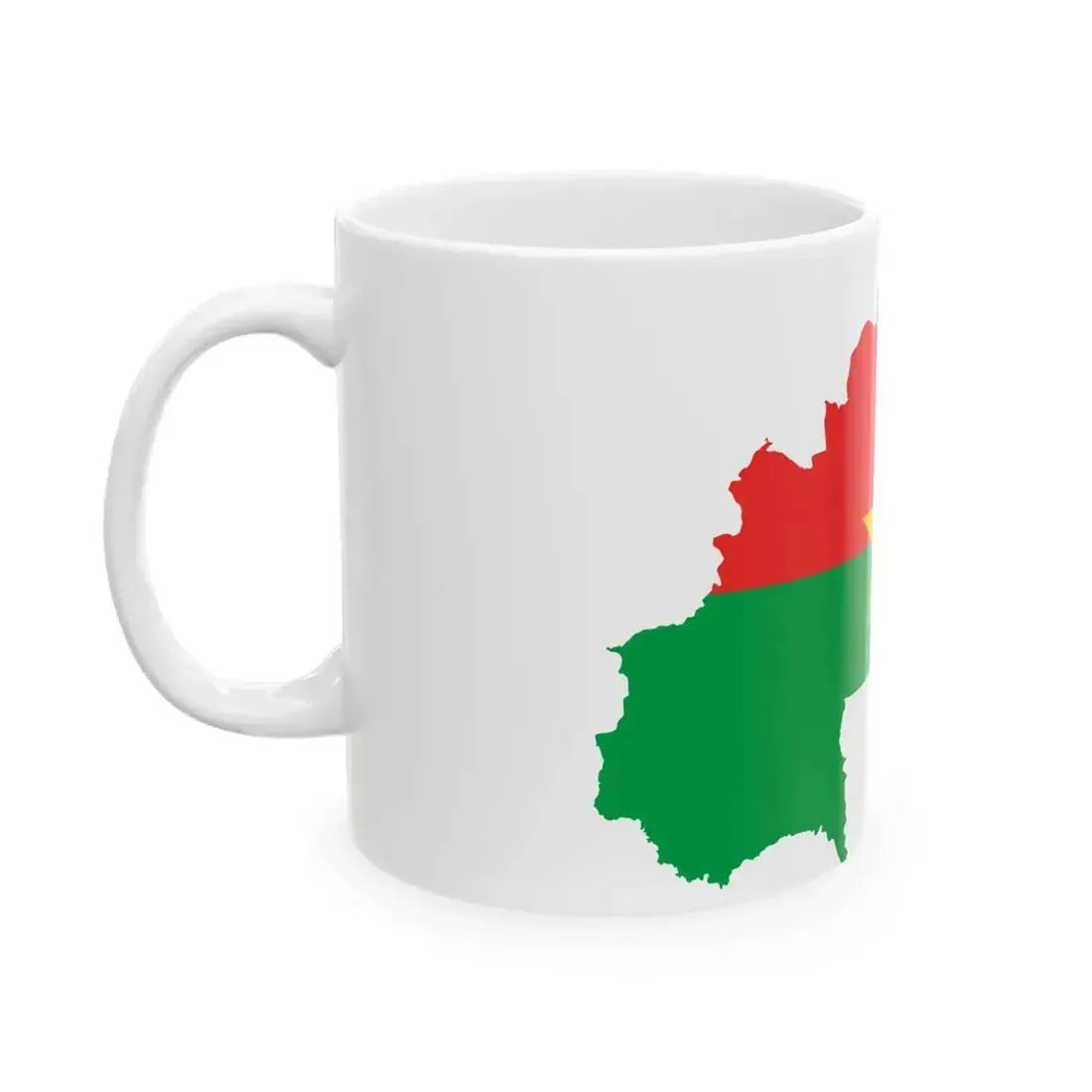 This White Coffee Mug showcases a flag map design of Burkina Faso, offering a unique blend of beverage function and geographical artistry. Burkina Faso's striking flag, characterized by its horizontal tricolor bands of red, yellow, and green, represents the country's natural wealth, unity, and hope for the future. This coffee mug serves as an engaging conversation starter for those interested in African culture, geography, or history.