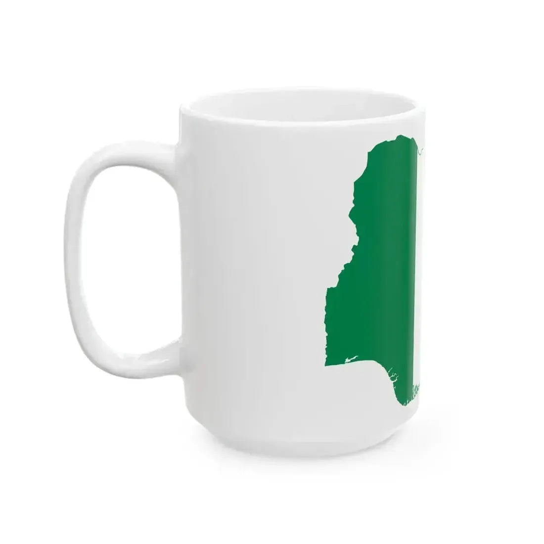 Sturdy white ceramic mugs available in 11 oz (≈330 ml) and 15 oz (≈440 ml), with a glossy finish and comfortable C-handle — microwave and dishwasher safe, and made from lead- and BPA-free materials.