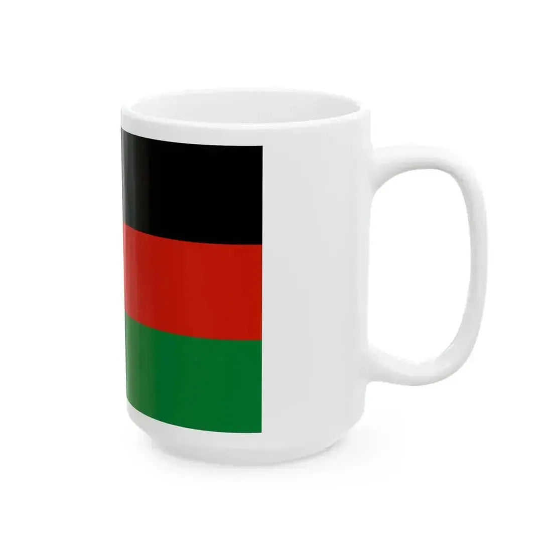 This 3-2 White Coffee Mug features a striking design inspired by the Flag of Afghanistan from 1980 to 1987. The flag's symbolic imagery is beautifully depicted, with its three vertical bands of green, white, and red, representing the country's past, present, and future. The central emblem, consisting of a socketed wheel (taking the form of a chakram) within a star-spangled mosque, stands as a testament to Afghanistan's rich cultural heritage and religious significance. This mug is perfect for anyone who appreciates unique and cool drinkware, as well as history buffs with an interest in Afghan history.
