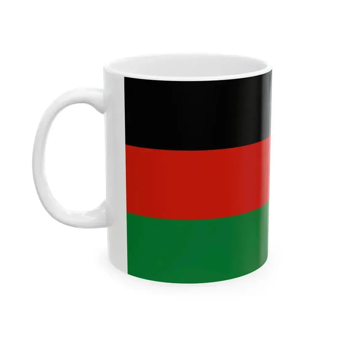 This white coffee mug features a unique design that showcases the Flag of Afghanistan from 1980 to 1992 without an emblem. The flag is beautifully illustrated on the mug, recreating the red, black, and green horizontal stripes with the large white Islamic emblem in the center removed. This design is a great representation for those who appreciate Afghan history or cultural artifacts. Perfect for anyone who appreciates unique and cool drinkware.