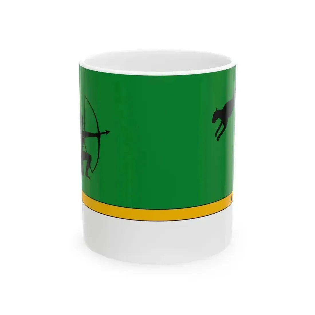 This White Coffee Mug showcases the flag of Amazonas, a region in Colombia rich with biodiversity and indigenous cultures. The design on this mug is an artistic representation of the official flag, featuring a green field representing the lush Amazon rainforest, a yellow diamond symbolizing gold, and a blue square representing the rivers that flow through the region. This mug makes for a unique addition to any Colombian-themed collection or a thoughtful gift for someone who appreciates South American art and culture.