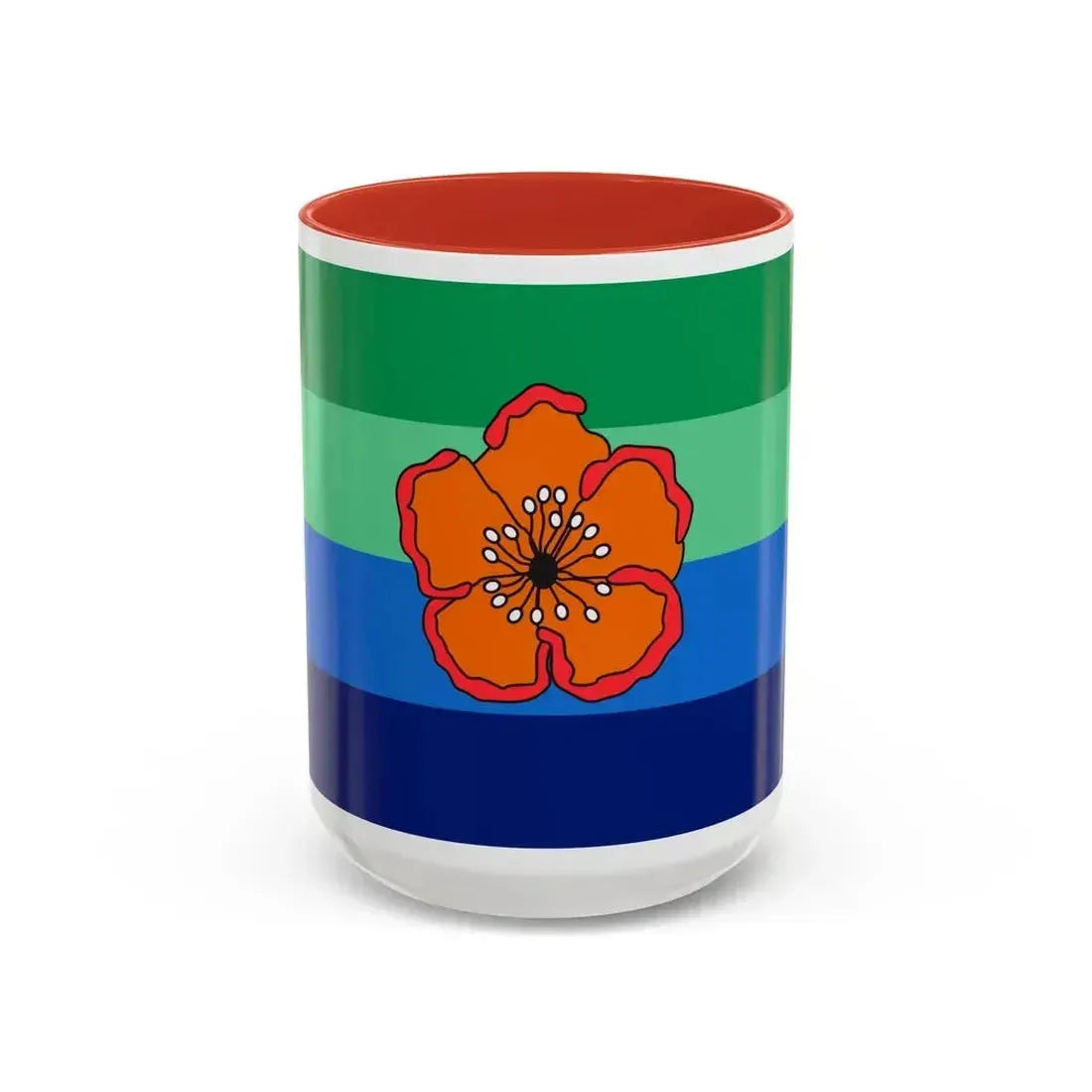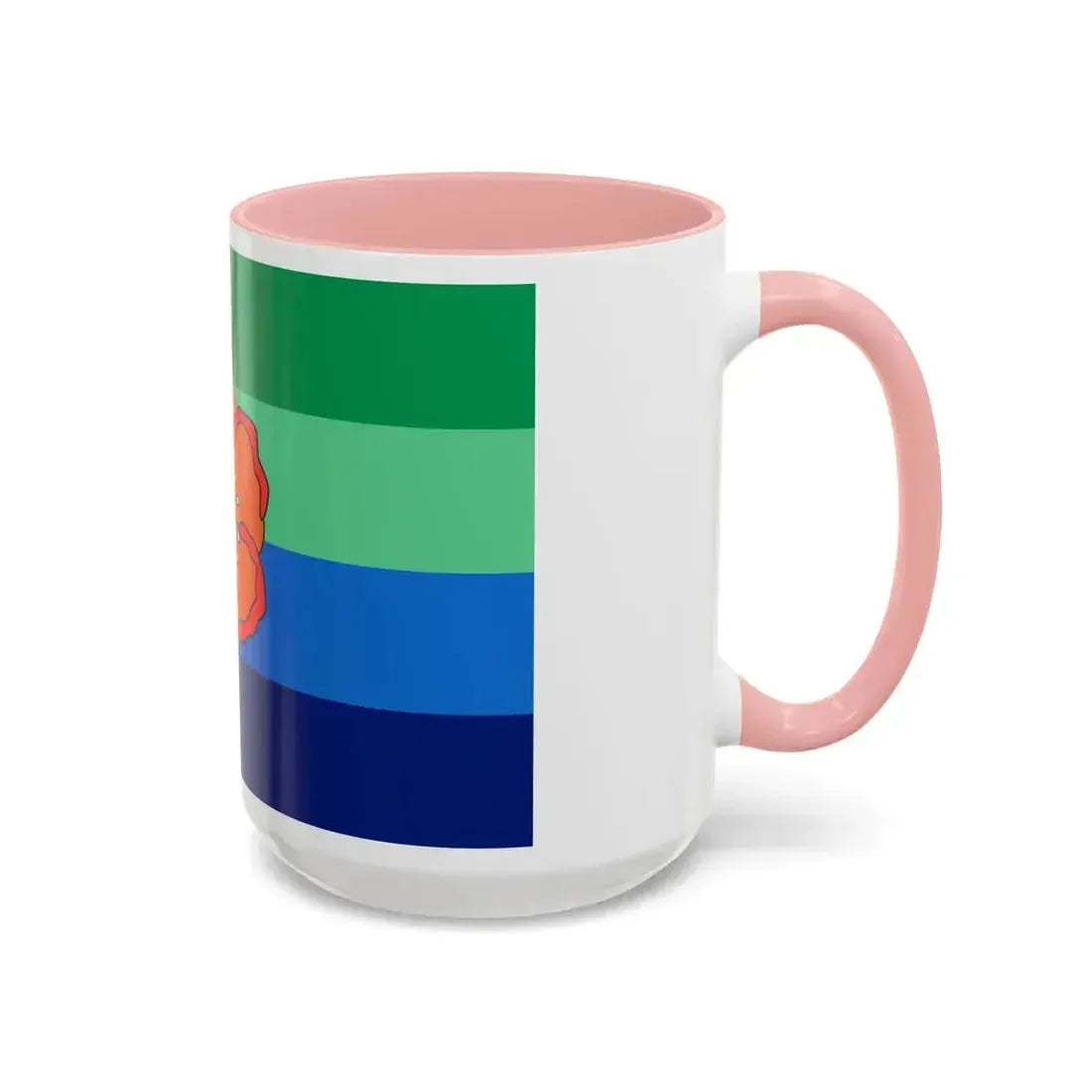 Accent ceramic mugs with a glossy white exterior and a colored interior & handle. Offered in 11 oz (≈330 ml) and 15 oz (≈440 ml), these mugs pair strong visual contrast with everyday durability — lead- and BPA-free.