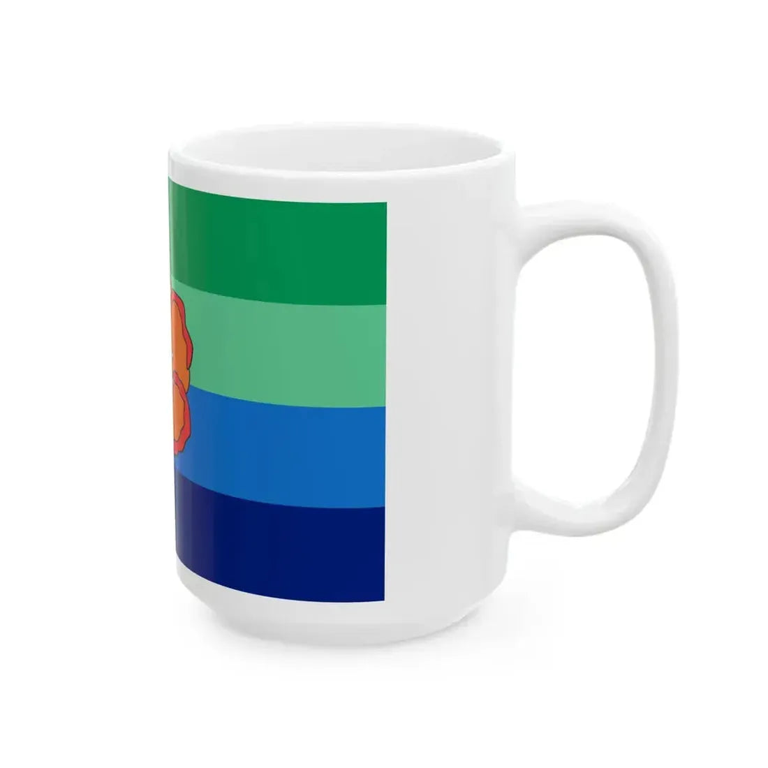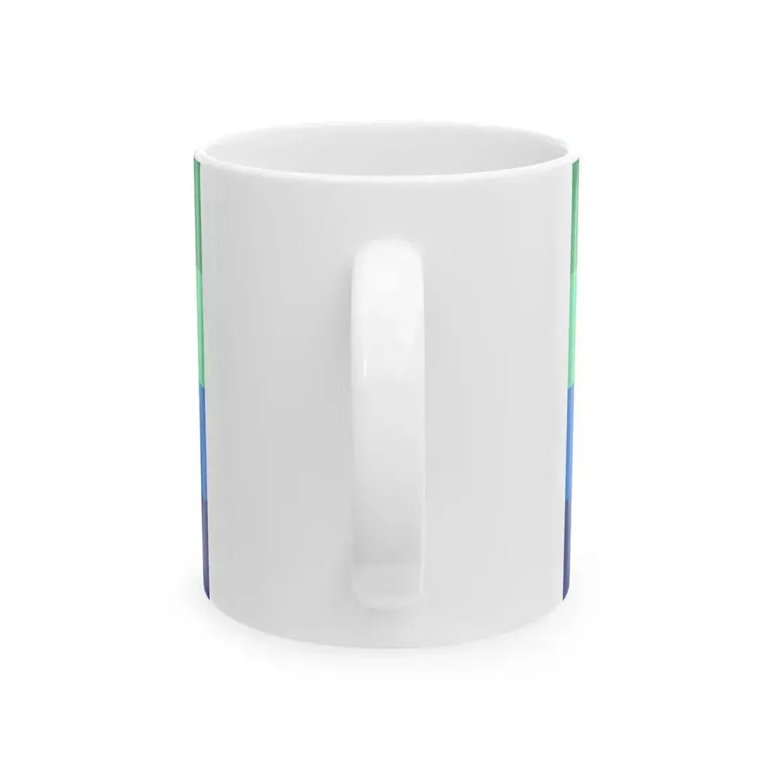 The Flag of Angaur Palau White Coffee Mug showcases a unique representation of Palauan culture and history, specifically focusing on the flag of Angaur island. This design is perfect for those who appreciate intricate artwork or have an affinity for Pacific Islander cultures. The mug features the official symbols of Angaur - a white field with a central blue diamond containing nine small yellow five-pointed stars arranged in three horizontal rows.