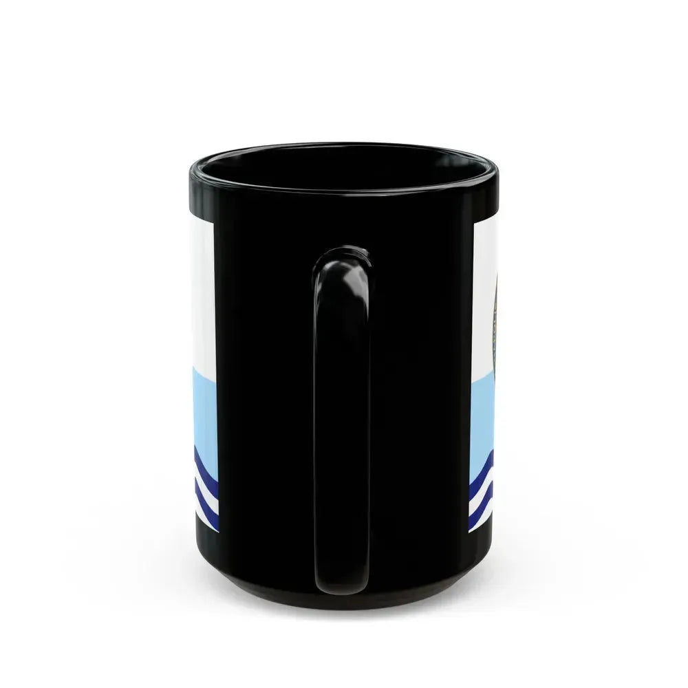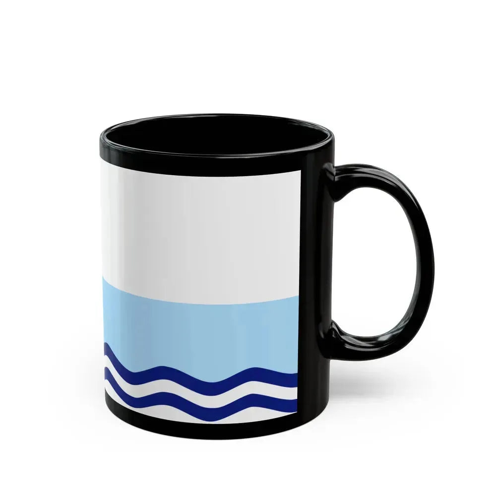 The "Flag of Annapolis Royal Canada - Black Coffee Mug" showcases an intriguing blend of history and modern drinkware. This mug features the flag of Annapolis Royal, a town in Nova Scotia, Canada. Designed with three vertical stripes, the top two stripes are red, symbolizing courage, and the bottom one is white, representing purity. In the center of the flag, a royal lion passant guardant, a traditional English heraldry symbol, stands as a testament to the town's British heritage. This mug serves as a unique reminder of the town's rich history, making it perfect for anyone who appreciates unique and cool drinkware, especially those with an affinity for Canadian or maritime history.