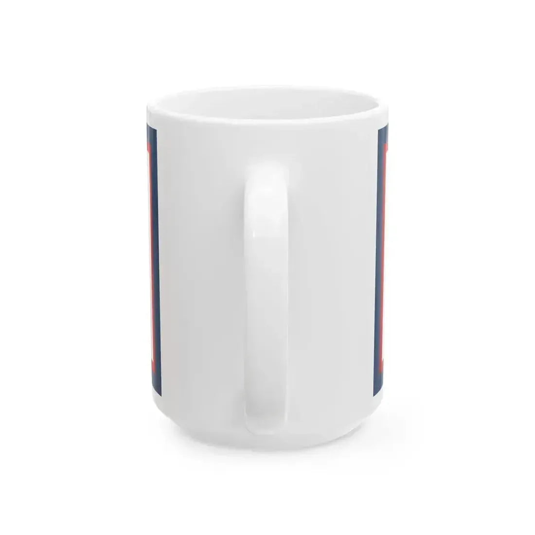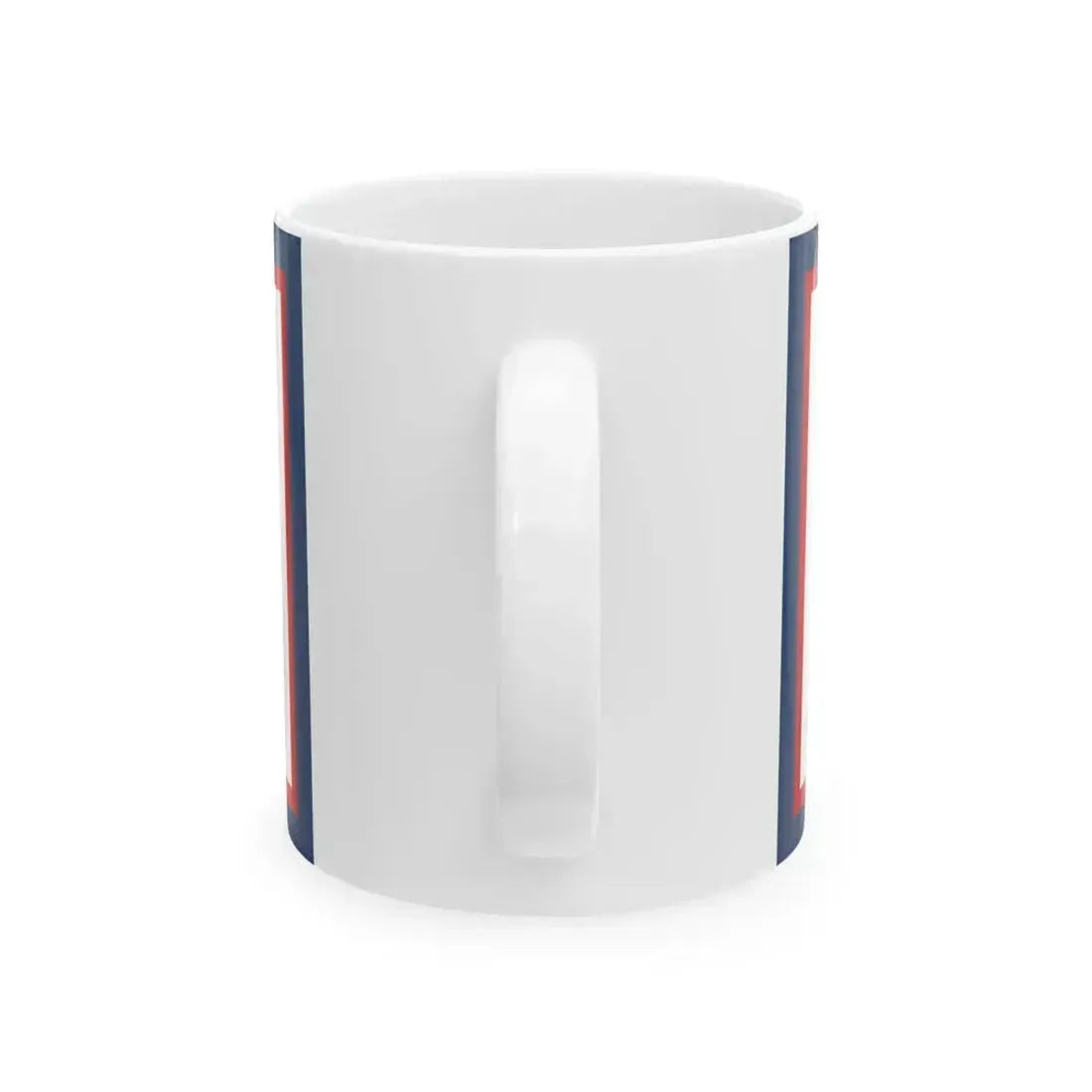 This white coffee mug showcases a design inspired by the Flag of Arvada, Colorado, United States. The flag features three vertical stripes in the colors blue, white, and gold, symbolizing the city's past, present, and future. In the center, an image of the Old Town Arvada water tower is displayed, representing the city's rich history and unique identity. This mug makes an excellent gift for anyone with a fondness for Colorado, Arvada, or American flag designs.